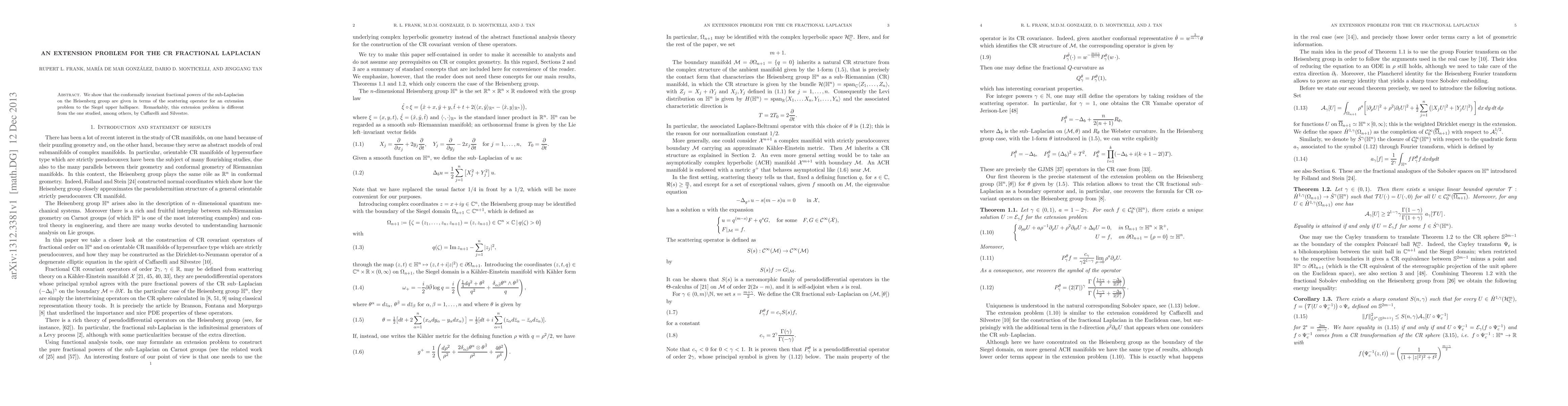 Summary: This paper presents an extension problem for the CR fractional Laplacian on the Heisenberg group, expressing its conformally invariant fractional powers via the scattering operator for an extension to the Siegel upper halfspace, differing from the classical extension problem studied by Caffarelli and Silvestre.