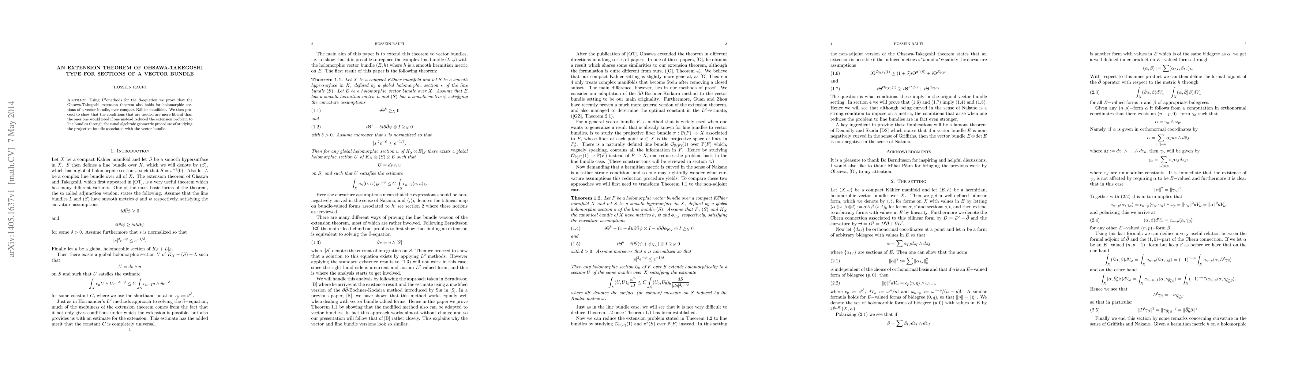 Summary: This paper extends the Ohsawa-Takegoshi theorem to holomorphic sections of vector bundles on compact Kähler manifolds using $L^2$-methods for the $\bar\partial$-equation, demonstrating more flexible conditions compared to algebraic geometric reductions to line bundles.