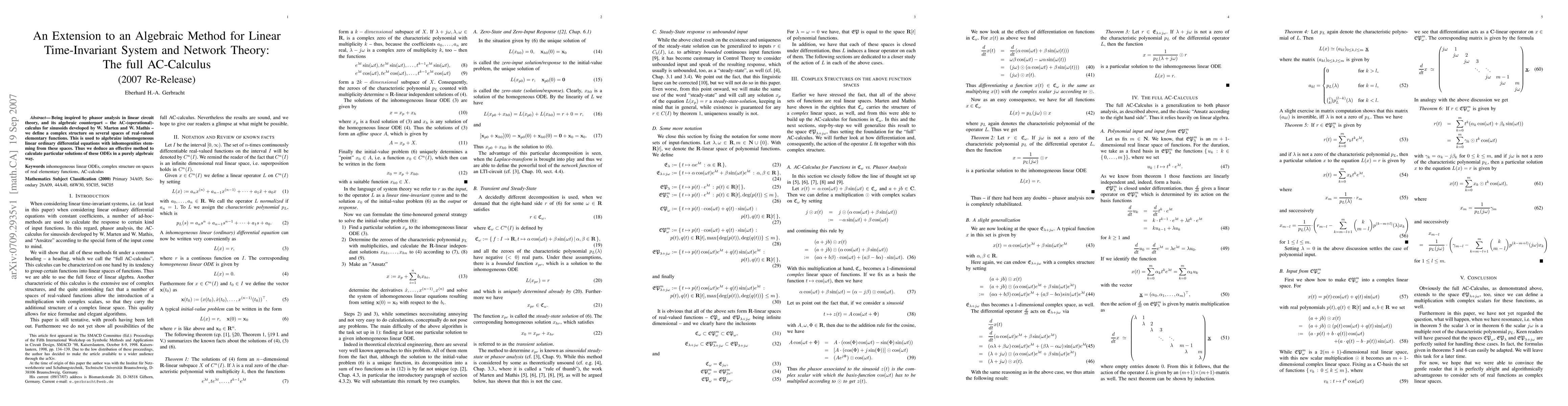 Being inspired by phasor analysis in linear circuit theory, and its algebraic counterpart - the AC-(operational)-calculus for sinusoids developed by W. Marten and W. Mathis - we define a complex structure on several spaces of real-valued elementary functions. This is used to algebraize inhomogeneous linear ordinary differential equations with inhomogenities stemming from these spaces. Thus we deduce an effective method to calculate particular solutions of these ODEs in a purely algebraic way.