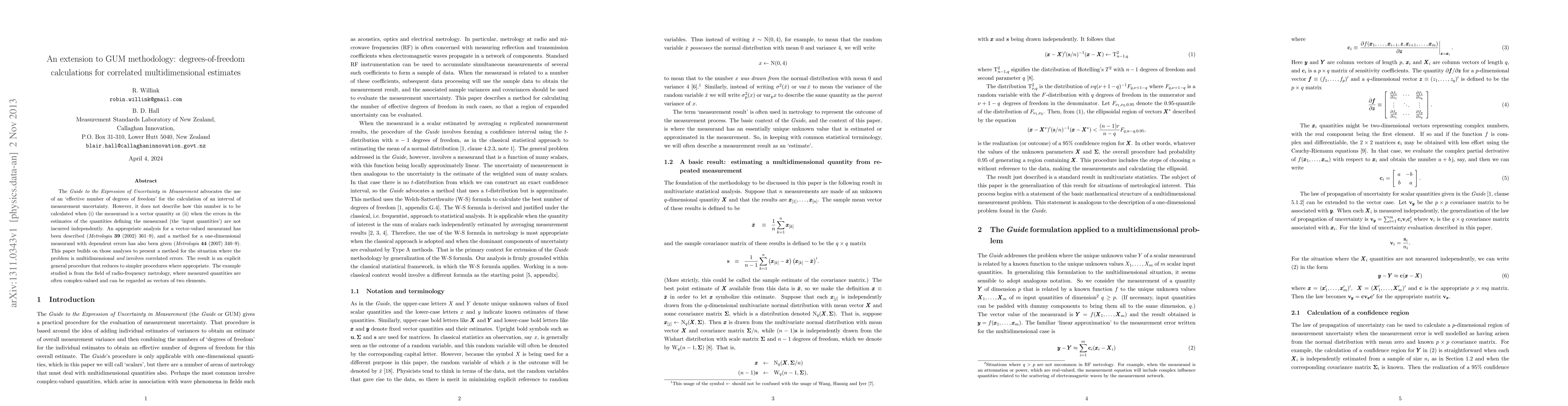 The Guide to the Expression of Uncertainty in Measurement advocates the use of an 'effective number of degrees of freedom' for the calculation of an interval of measurement uncertainty. However, it does not describe how this number is to be calculated when (i) the measurand is a vector quantity or (ii) when the errors in the estimates of the quantities defining the measurand (the 'input quantities') are not incurred independently. An appropriate analysis for a vector-valued measurand has been described (Metrologia 39 (2002) 361-9), and a method for a one-dimensional measurand with dependent errors has also been given (Metrologia 44 (2007) 340-9). This paper builds on those analyses to present a method for the situation where the problem is multidimensional and involves correlated errors. The result is an explicit general procedure that reduces to simpler procedures where appropriate. The example studied is from the field of radio-frequency metrology, where measured quantities are often complex-valued and can be regarded as vectors of two elements.
