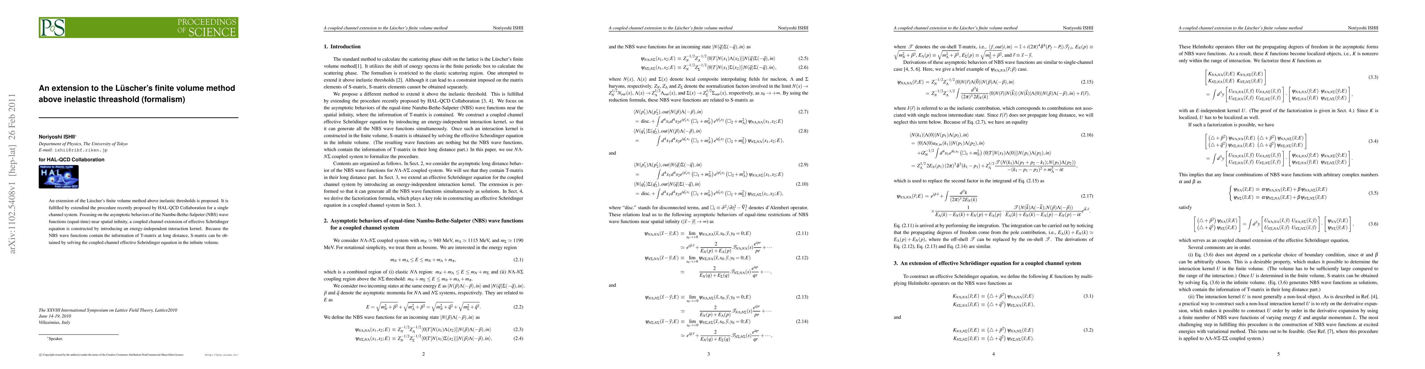 An extension of the Luscher's finite volume method above inelastic thresholds is proposed. It is fulfilled by extendind the procedure recently proposed by HAL-QCD Collaboration for a single channel system. Focusing on the asymptotic behaviors of the Nambu-Bethe-Salpeter (NBS) wave functions (equal-time) near spatial infinity, a coupled channel extension of effective Schrodinger equation is constructed by introducing an energy-independent interaction kernel. Because the NBS wave functions contain the information of T-matrix at long distance, S-matrix can be obtained by solving the coupled channel effective Schrodinger equation in the infinite volume.