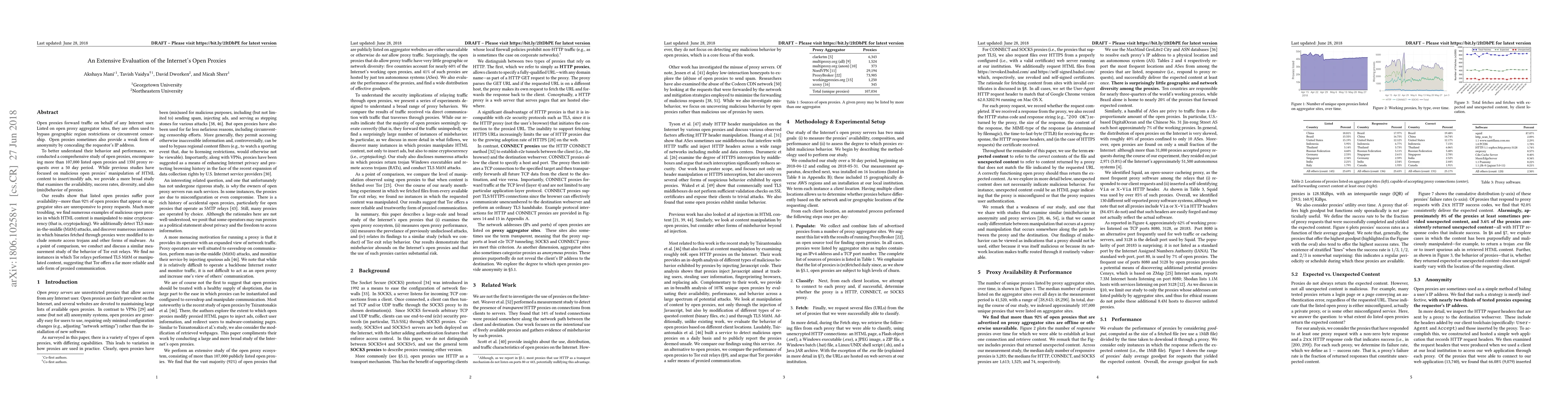 A study of over 107,000 open proxies found that most were unavailable, while malicious ones used for cryptocurrency mining and malware distribution, making Tor a safer alternative.
