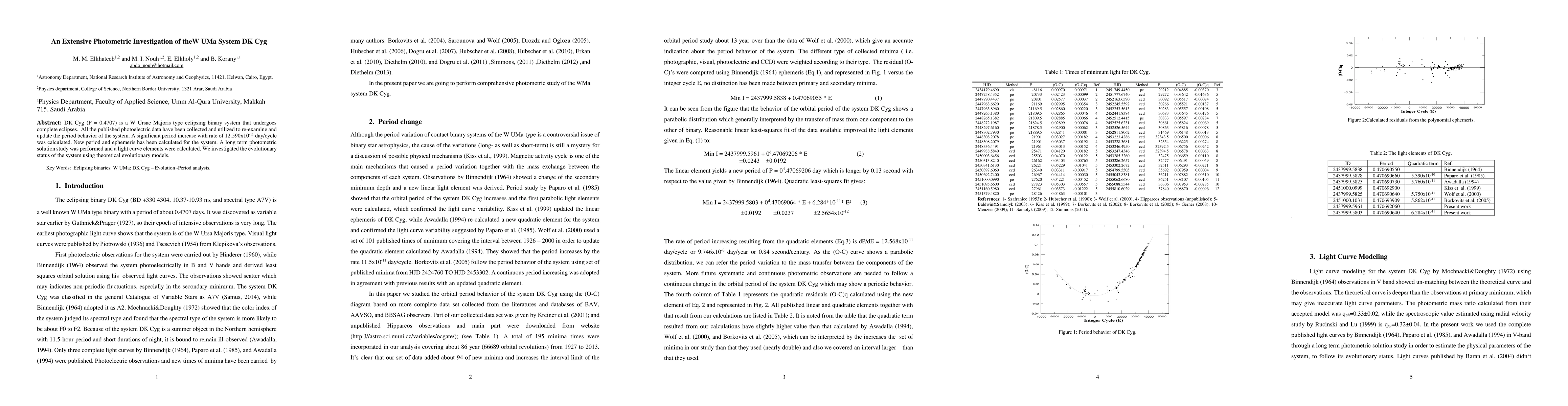 A study of the W Ursae Majoris binary system DK Cyg reveals a significant period increase, prompting a new calculation of its period and ephemeris. The research also investigates the system's evolutionary status using theoretical models.