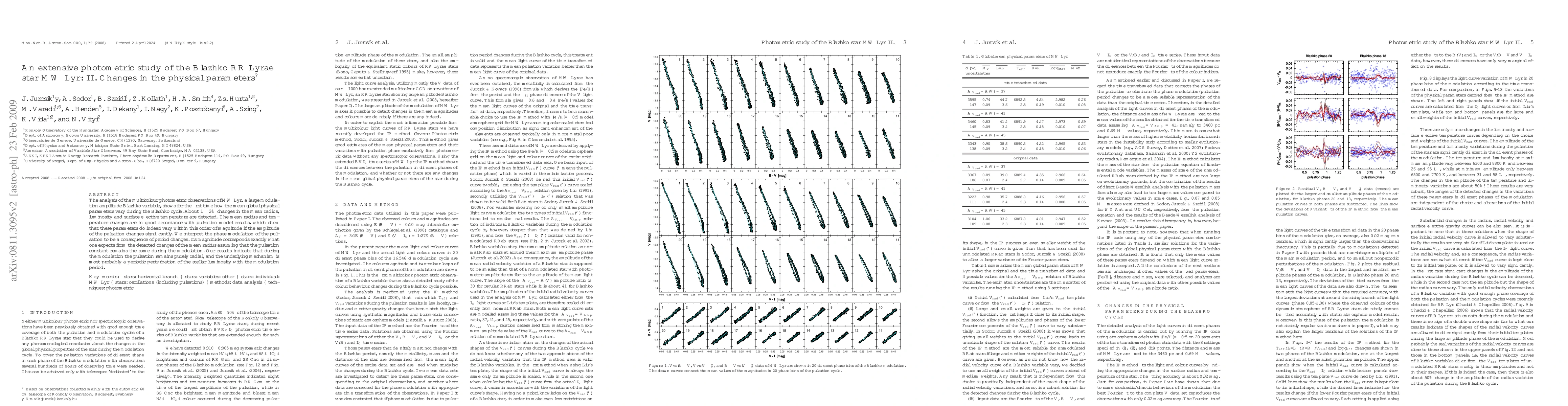 The analysis of the multicolour photometric observations of MW Lyr, a large modulation amplitude Blazhko variable, shows for the first time how the mean global physical parameters vary during the Blazhko cycle. About 1-2 percent changes in the mean radius, luminosity and surface effective temperature are detected. The mean radius and temperature changes are in good accordance with pulsation model results, which show that these parameters do indeed vary within this order of magnitude if the amplitude of the pulsation changes significantly. We interpret the phase modulation of the pulsation to be a consequence of period changes. Its magnitude corresponds exactly what one expects from the detected changes of the mean radius assuming that the pulsation constant remains the same during the modulation. Our results indicate that during the modulation the pulsation remains purely radial, and the underlying mechanism is most probably a periodic perturbation of the stellar luminosity with the modulation period.