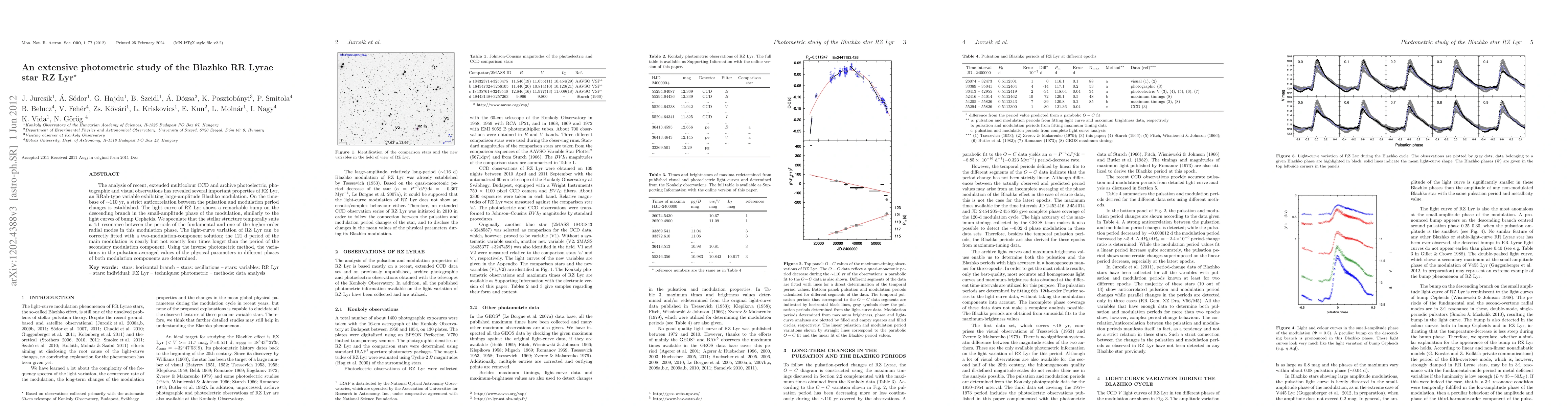 The analysis of recent, extended multicolour CCD and archive photoelectric, photographic and visual observations has revealed several important properties of RZ Lyr, an RRab-type variable exhibiting large-amplitude Blazhko modulation. On the time-base of \sim110 yr, a strict anticorrelation between the pulsation and modulation period changes is established. The light curve of RZ Lyr shows a remarkable bump on the descending branch in the small-amplitude phase of the modulation, similarly to the light curves of bump Cepheids. We speculate that the stellar structure temporally suits a 4:1 resonance between the periods of the fundamental and one of the higher-order radial modes in this modulation phase. The light-curve variation of RZ Lyr can be correctly fitted with a two-modulation-component solution; the 121 d period of the main modulation is nearly but not exactly four times longer than the period of the secondary modulation component. Using the inverse photometric method, the variations in the pulsation-averaged values of the physical parameters in different phases of both modulation components are determined.