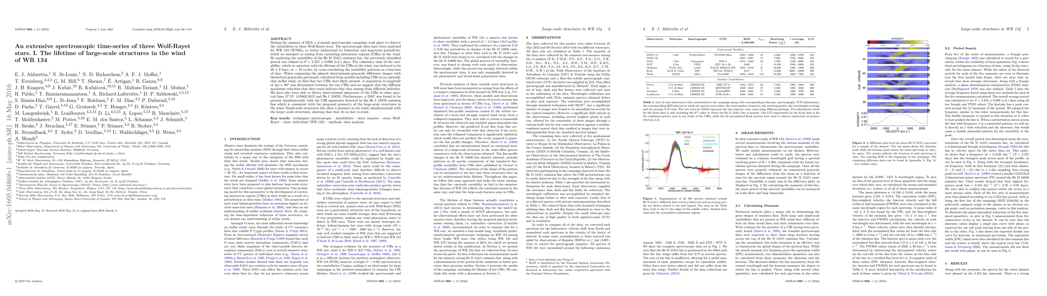 Researchers observed and analyzed the wind of Wolf-Rayet star WR 134, finding evidence of two corotating interaction regions that form large-scale structures in the wind. The study provides insights into the variability and periodicity of stellar winds.