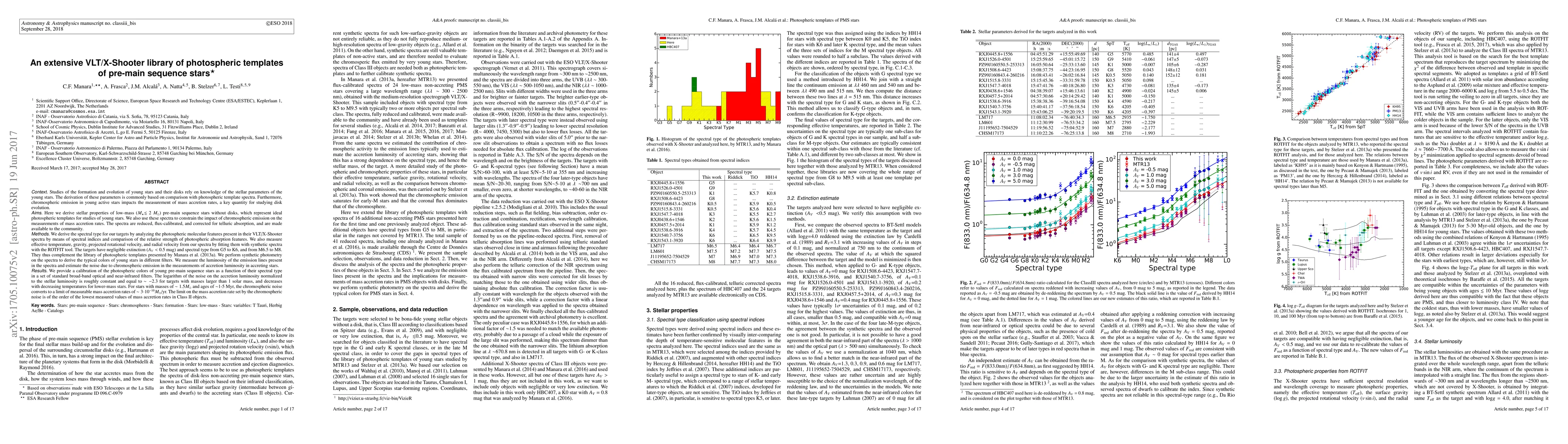 This paper compiles a comprehensive VLT/X-Shooter library of photospheric templates for low-mass pre-main sequence stars, providing essential stellar parameters and assessing the impact of chromospheric emission on mass accretion rate measurements. The derived spectral types, effective temperatures, and other properties are made available to aid in the study of young stars and their disks.