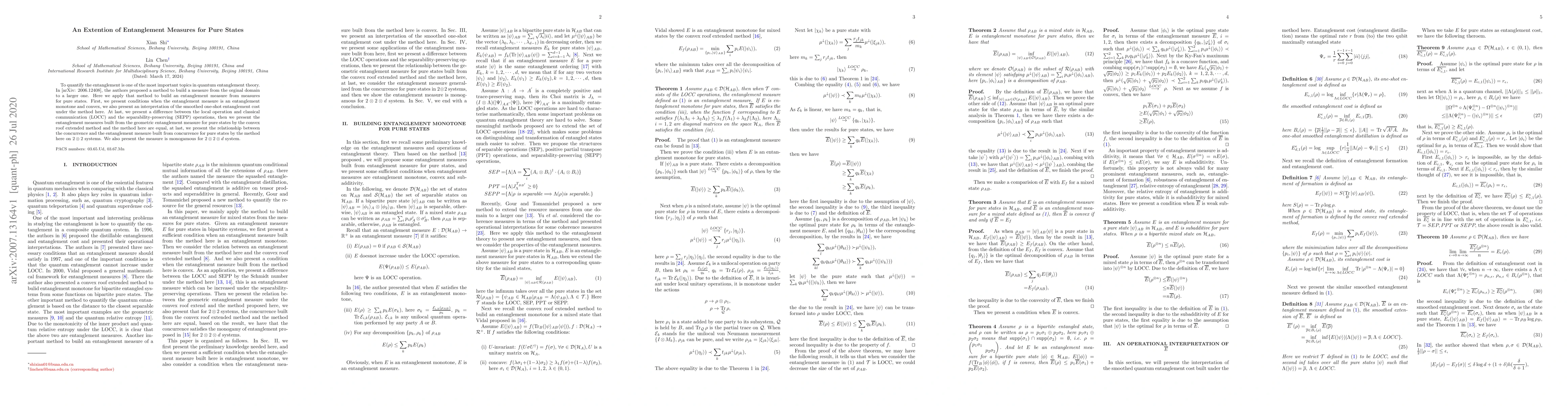 To quantify the entanglement is one of the most important topics in quantum entanglement theory. In [arXiv: 2006.12408], the authors proposed a method to build a measure from the orginal domain to a larger one. Here we apply that method to build an entanglement measure from measures for pure states. First, we present conditions when the entanglement measure is an entanglement monotone and convex, we also present an interpretation of the smoothed one-shot entanglement cost under the method here. At last, we present a difference between the local operation and classical communication (LOCC) and the separability-preserving (SEPP) operations, then we present the entanglement measures built from the geometric entanglement measure for pure states by the convex roof extended method and the method here are equal, at last, we present the relationship between the concurrence and the entanglement measure built from concurrence for pure states by the method here on 2 \otimes 2 systems. We also present the measure is monogamous for 2\otimes 2 \otimes d system.