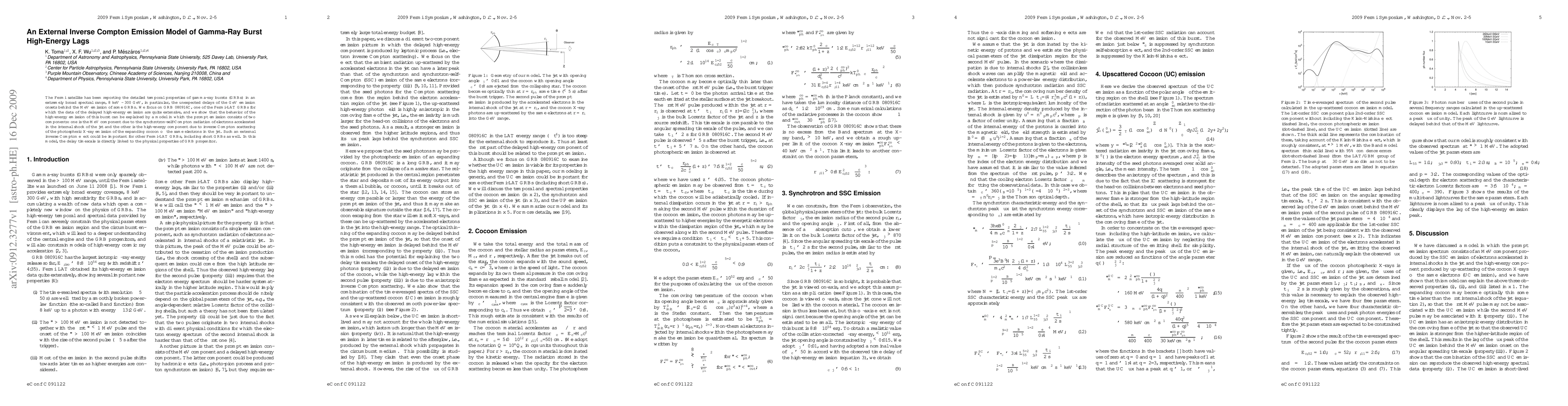 This paper proposes an external inverse Compton emission model to explain the high-energy lags observed in gamma-ray bursts (GRBs), particularly focusing on GRB 080916C. The model attributes the delayed GeV emission to inverse Compton scattering of photospheric X-ray emission by electrons in the jet's expanding cocoon, suggesting this mechanism may also apply to other Fermi-LAT GRBs.