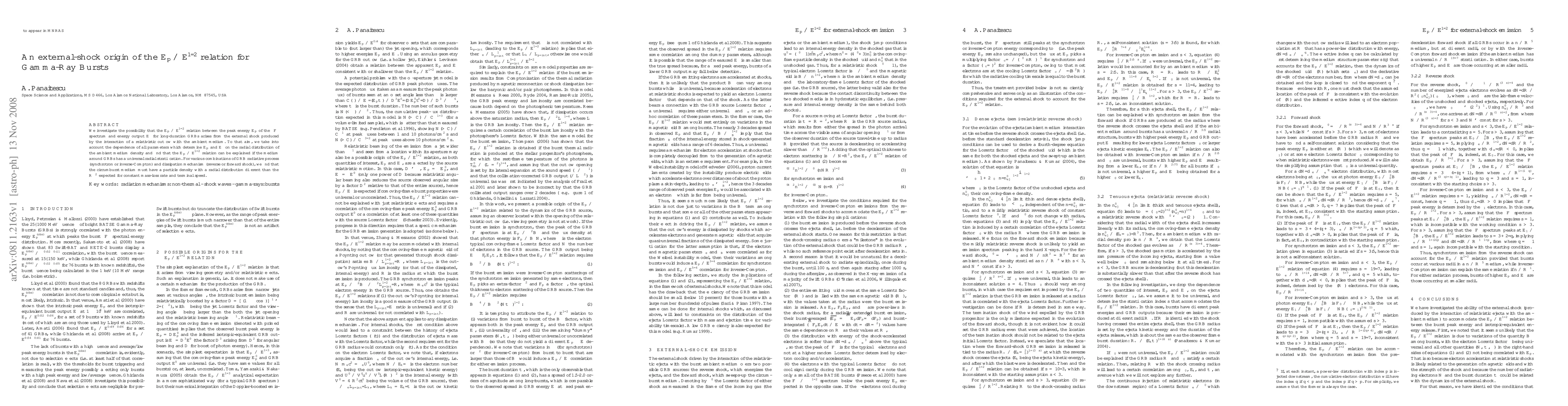 Research suggests that gamma-ray bursts may originate from external shocks interacting with the ambient medium, leading to a universal radial stratification of particle density in the circumburst medium. This supports an E_p-E_gamma relation where peak energy is proportional to the square root of energy output.