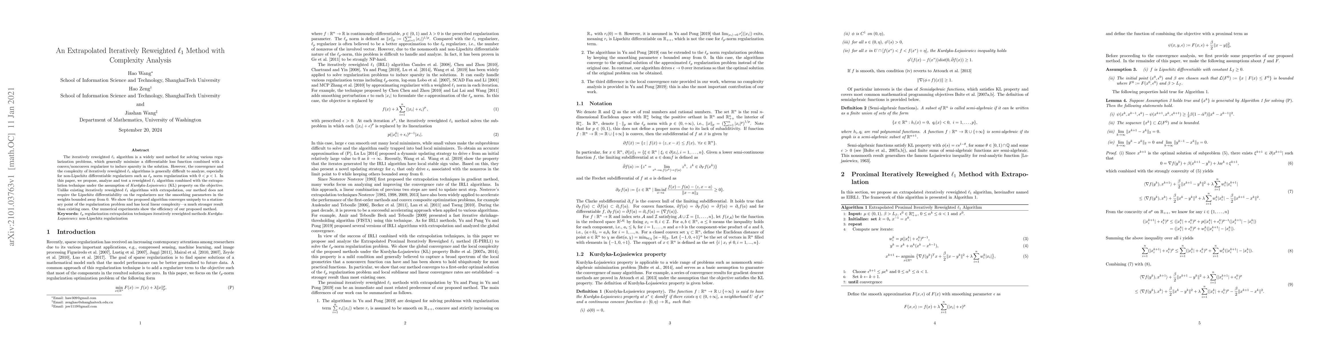 This paper proposes a new extrapolated iteratively reweighted l1 method that leverages the Kurdyka-Lojasiewicz property for convergence analysis, without requiring Lipschitz differentiability or bounded smoothing parameters. The method is shown to converge to a stationary point and achieve local linear complexity, outperforming existing algorithms.
