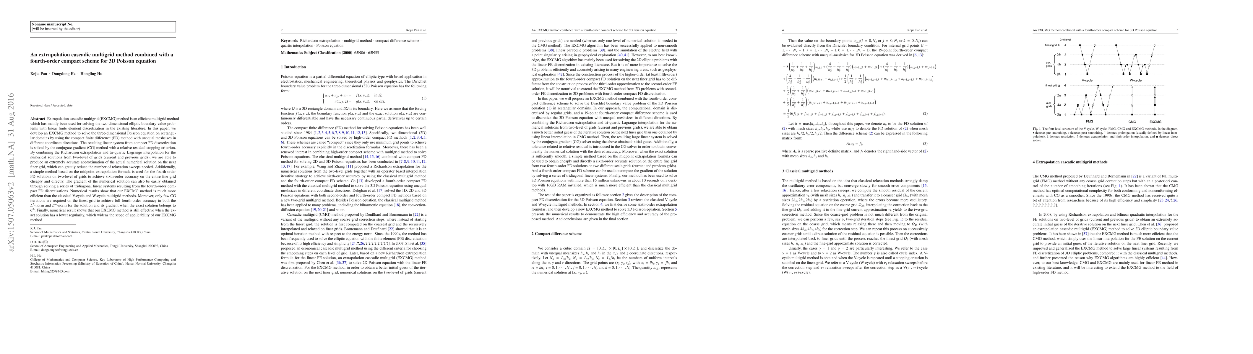 Researchers developed a new method to solve 3D Poisson equations using compact finite difference methods and extrapolation techniques, achieving sixth-order accuracy at low computational cost, and outperforming classical multigrid methods in efficiency.