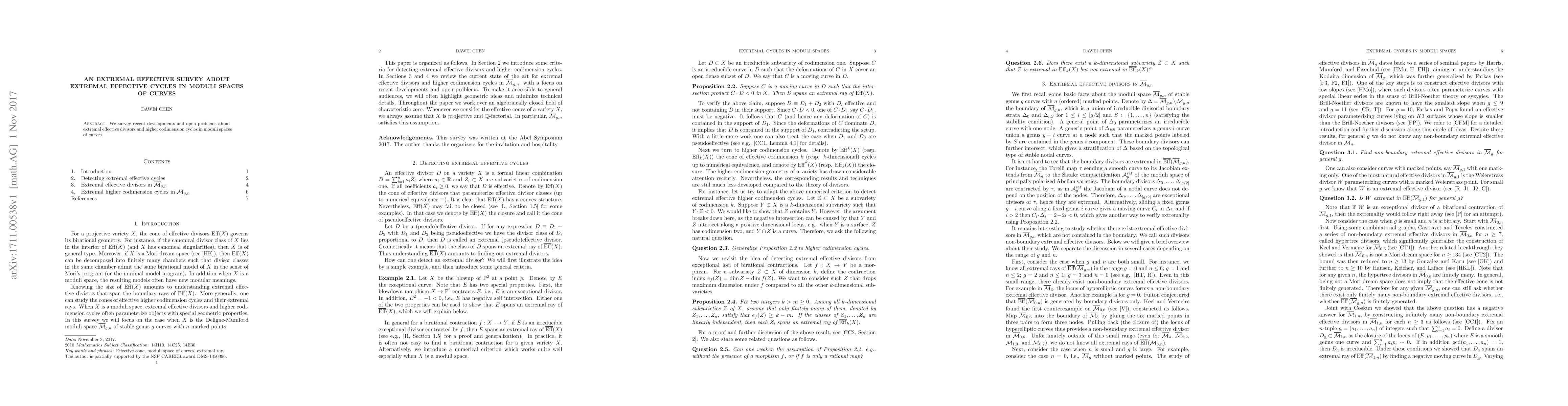 Summary: This paper surveys recent advancements and identifies open questions regarding extremal effective divisors and higher codimension cycles in moduli spaces of algebraic curves, highlighting significant developments in the field.