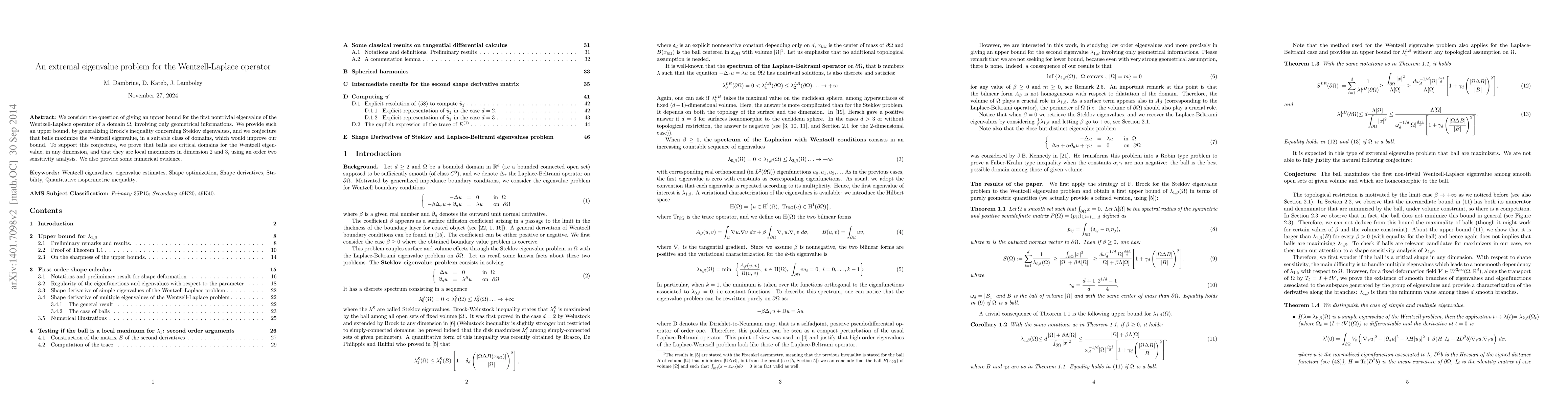 This paper provides an upper bound for the first nontrivial eigenvalue of the Wentzell-Laplace operator in a domain $\Omega$ based on geometrical information, generalizing Brock's inequality. It conjectures that balls maximize the Wentzell eigenvalue within a class of domains and supports this by proving balls are critical and local maximizers in dimensions 2 and 3.