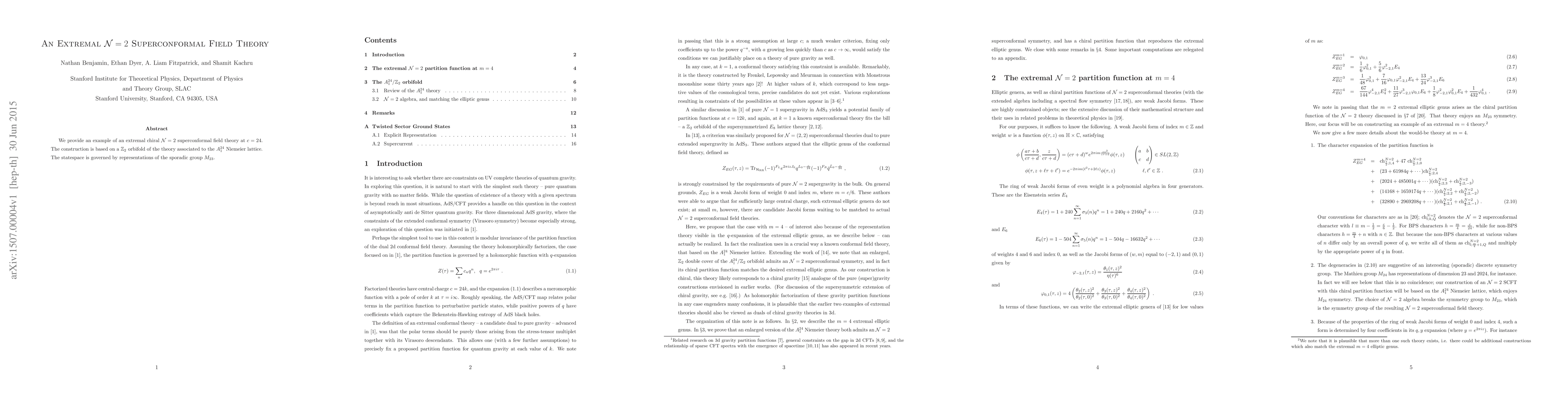 We provide an example of an extremal chiral ${\cal N}=2$ superconformal field theory at $c=24$. The construction is based on a ${\mathbb Z}_2$ orbifold of the theory associated to the $A_{1}^{24}$ Niemeier lattice. The statespace is governed by representations of the sporadic group $M_{23}$.
