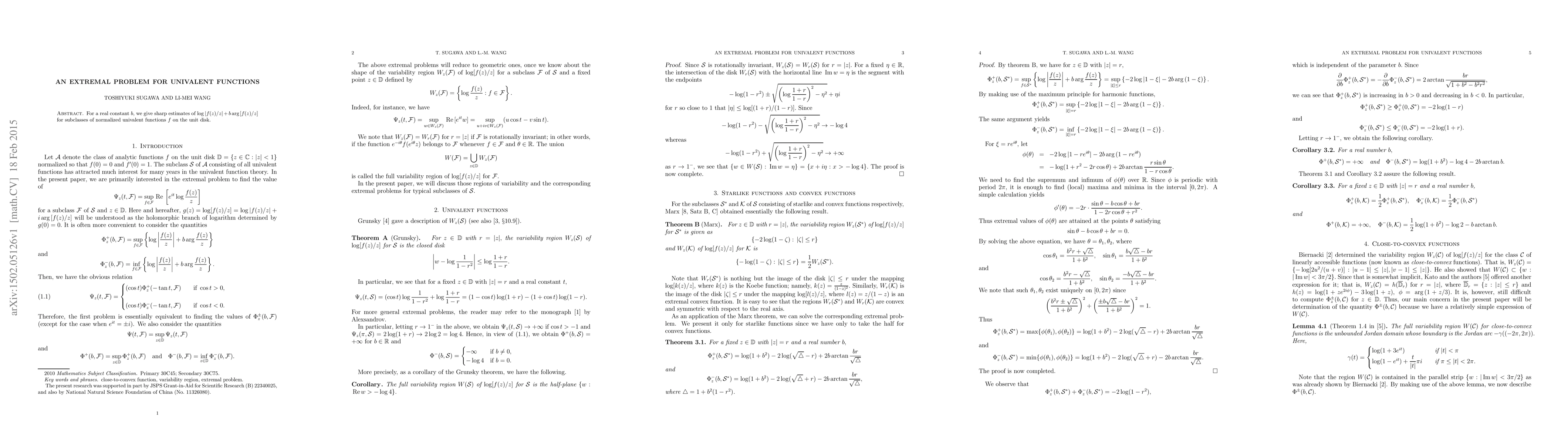 For a real constant $b,$ we give sharp estimates of $\log|f(z)/z|+b\arg[f(z)/z]$ for subclasses of normalized univalent functions $f$ on the unit disk.