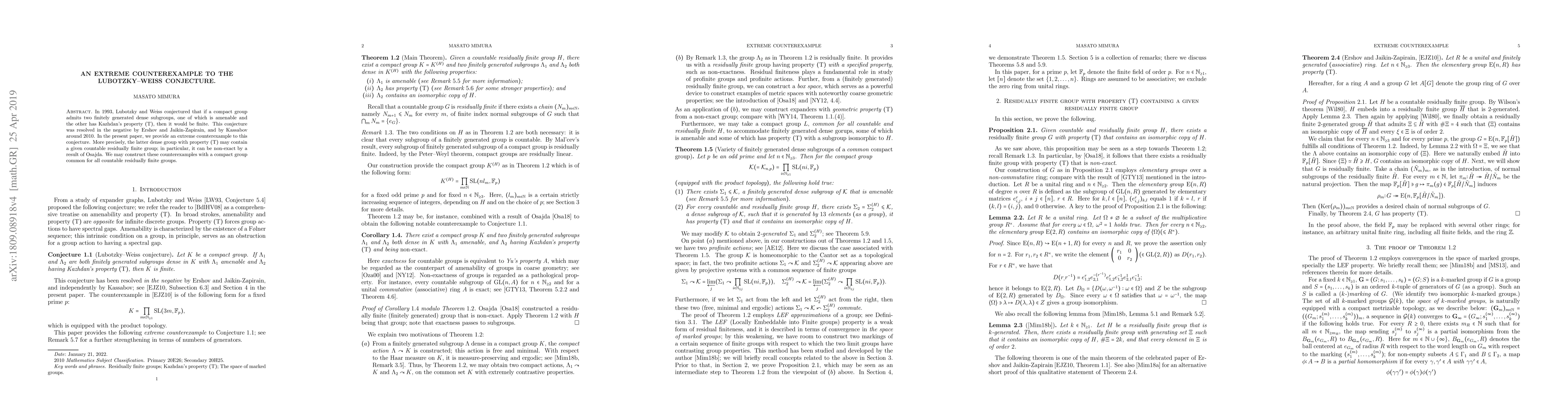 In 1993, Lubotzky and Weiss conjectured that if a compact group admits two finitely generated dense subgroups, one of which is amenable and the other has Kazhdan's property (T), then it would be finite. This conjecture was resolved in the negative by Ershov and Jaikin-Zapirain, and by Kassabov around 2010. In the present paper, we provide an extreme counterexample to this conjecture. More precisely, the latter dense group with property (T) may contain a given countable residually finite group; in particular, it can be non-exact by a result of Osajda. We may construct these counterexamples with a compact group common for all countable residually finite groups.