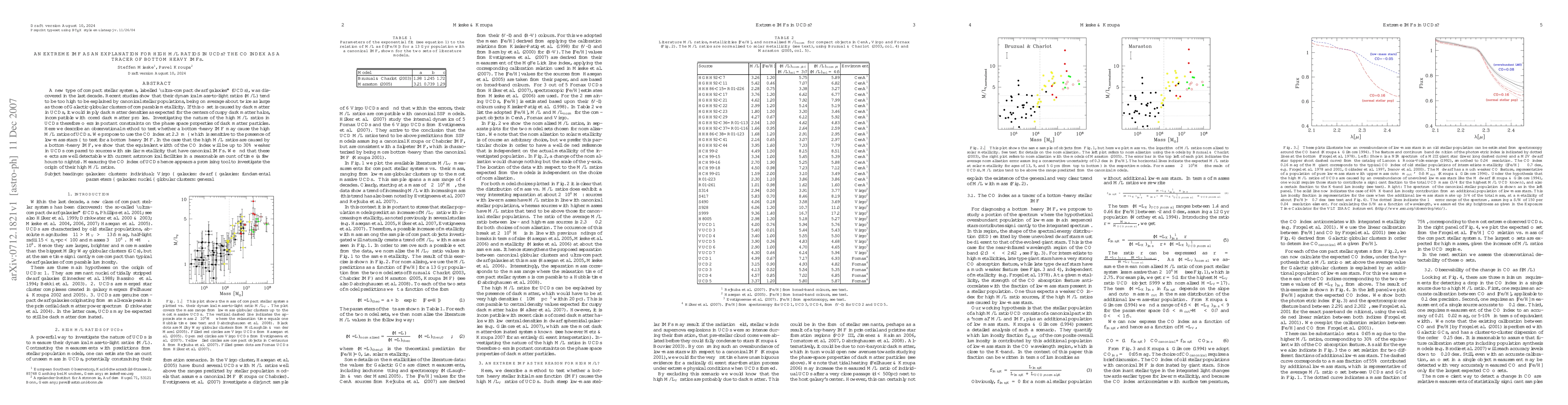 Research investigates whether a bottom-heavy initial mass function is behind high M/L ratios in ultra-compact dwarf galaxies, proposing the CO index as a tracer to detect such an effect.