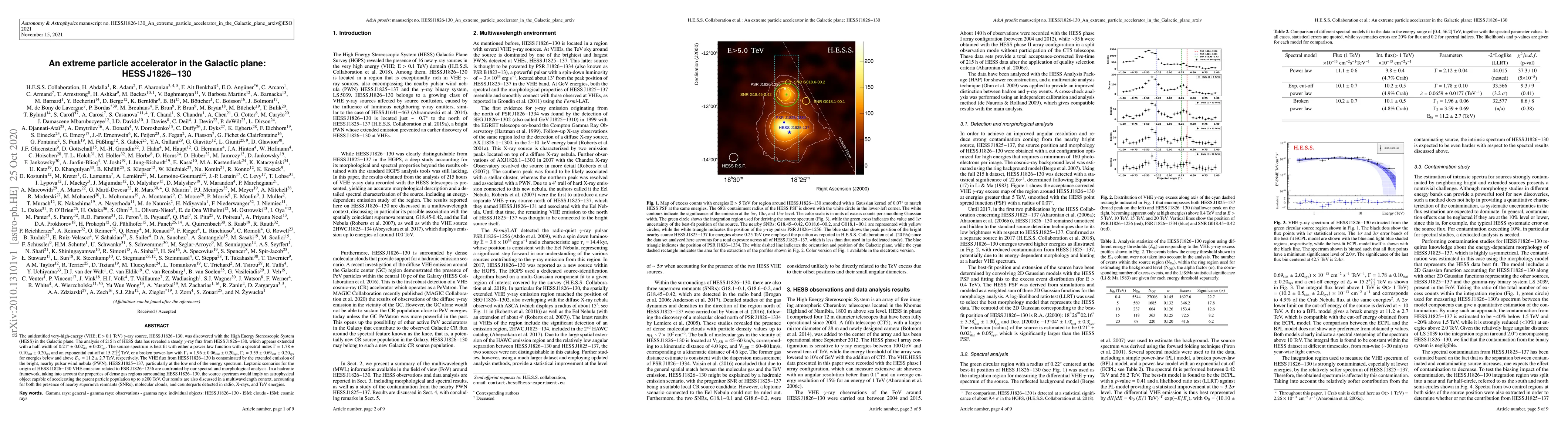 The HESS J1826$-$130 very-high-energy gamma-ray source, discovered in the Galactic plane, exhibits a steady extended flux best fit by either a power-law or broken power-law spectrum, suggesting an extreme particle accelerator potentially capable of energies above 200 TeV. The source's emission is influenced by nearby pulsar wind nebulae and supernova remnants.