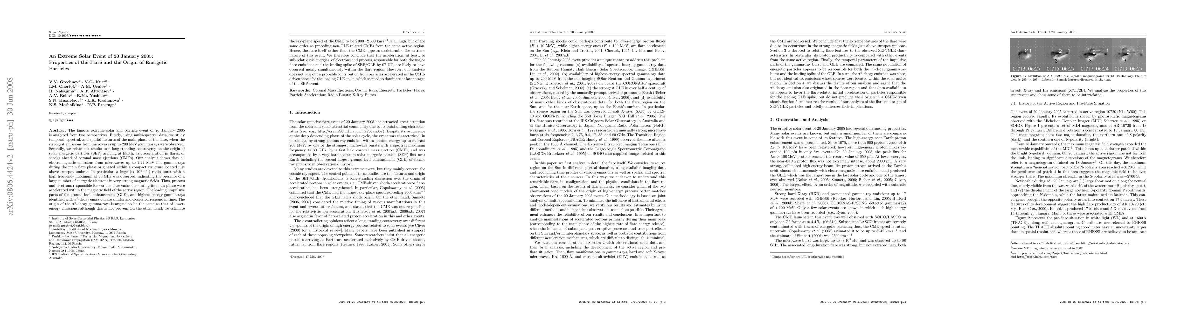Scientists studied an extreme solar flare in 2005, finding that energetic particles were accelerated within a compact structure above sunspot umbrae, suggesting the flare itself was responsible for the event's severity.