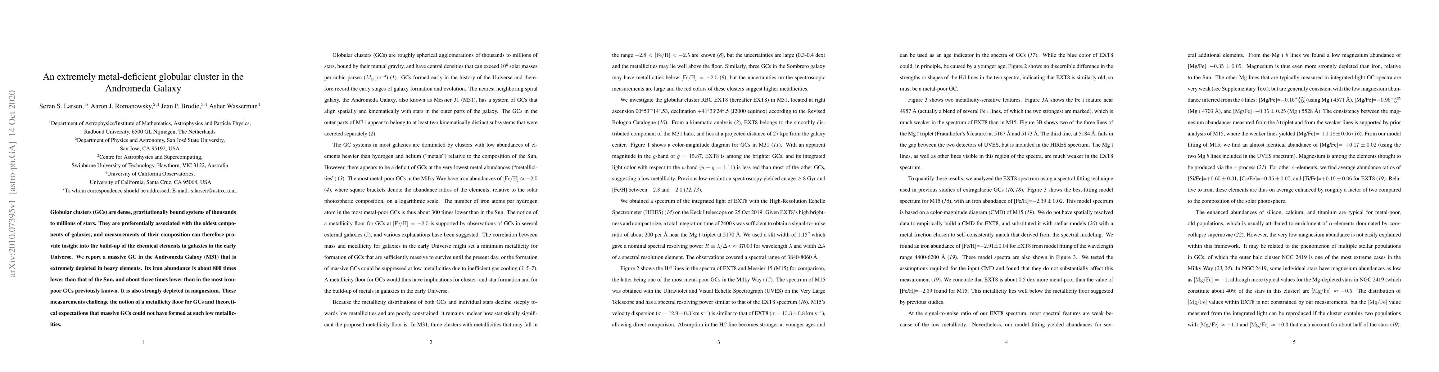 Researchers discovered a massive star cluster in the Andromeda Galaxy with extremely low levels of heavy elements, far below previous records. This finding challenges current ideas about how and when such metal-poor star clusters can form in the universe.