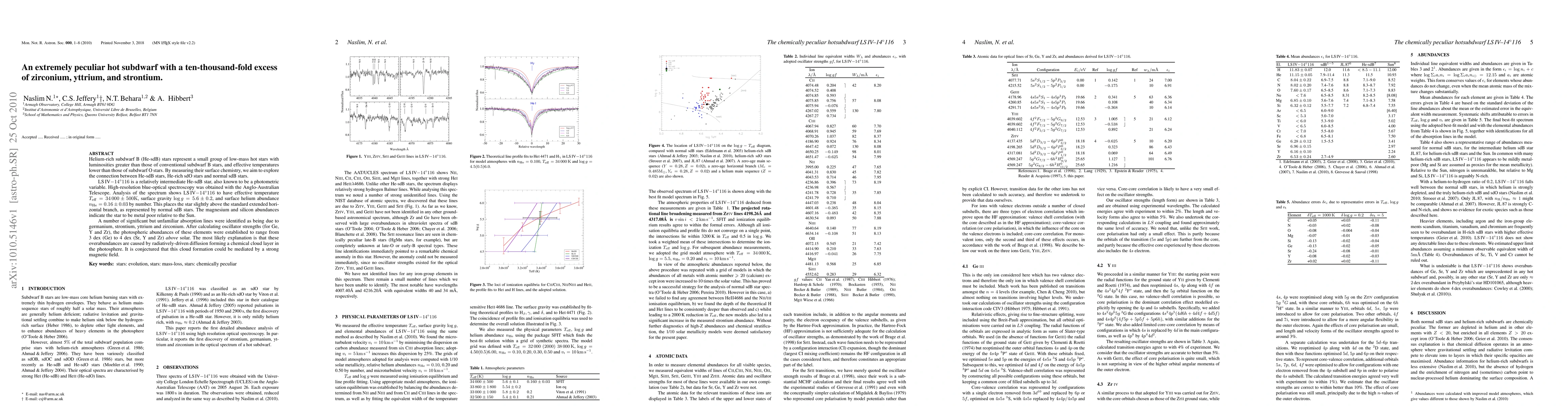 This paper investigates the peculiar helium-rich subdwarf B star LS IV-14 116, revealing an extraordinary ten-thousand-fold excess of zirconium, yttrium, and strontium, likely due to radiatively-driven diffusion in its photosphere, possibly influenced by a strong magnetic field.