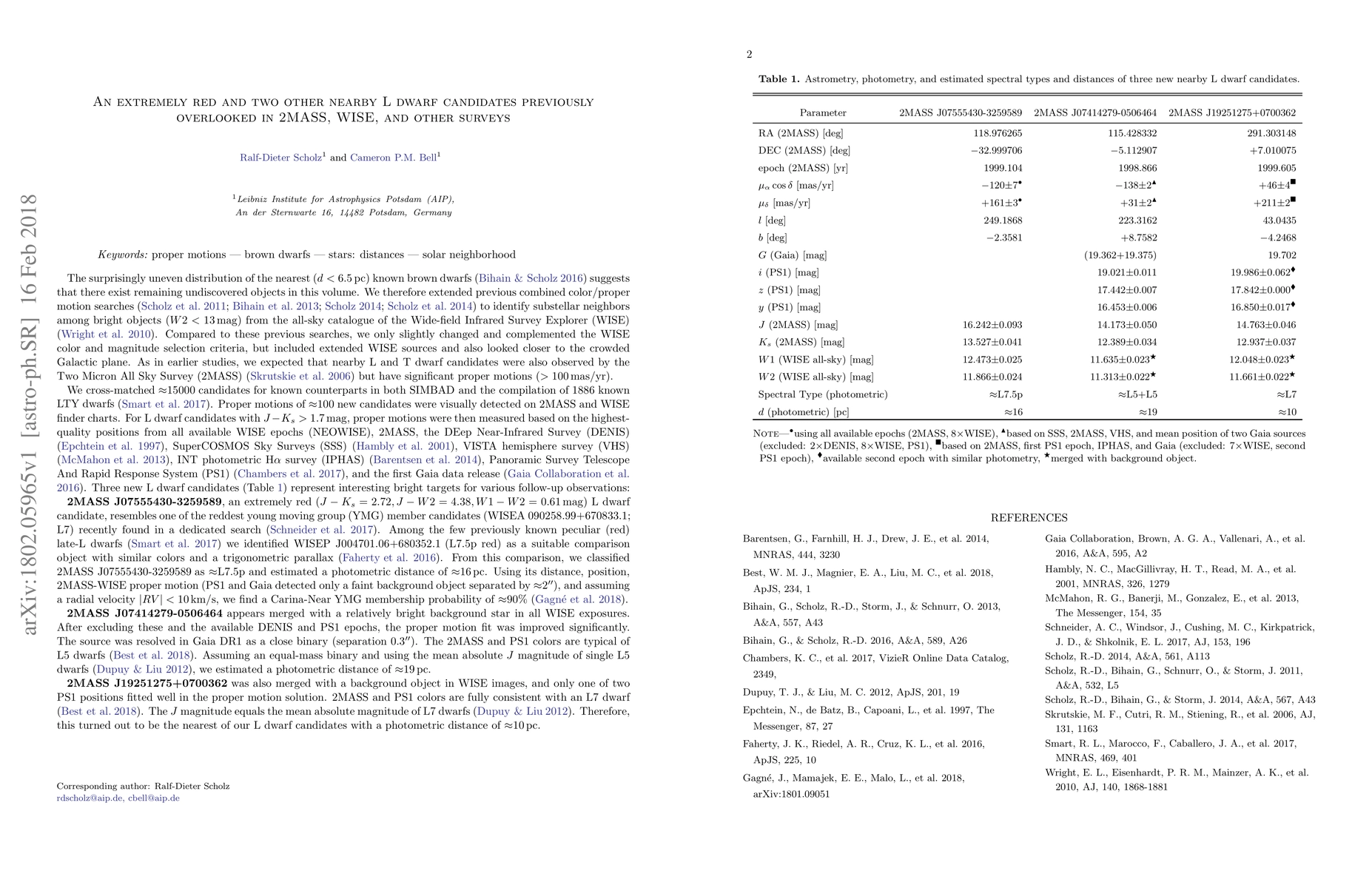 This paper identifies three new L dwarf candidates near the Galactic plane using WISE, 2MASS, and other survey data. The first is an extremely red L7.5p dwarf at 16 pc, potentially part of the Carina-Near young moving group. The second is a close binary of two L5 dwarfs at 19 pc, resolved in Gaia DR1. The third is an L7 dwarf candidate at 10 pc.