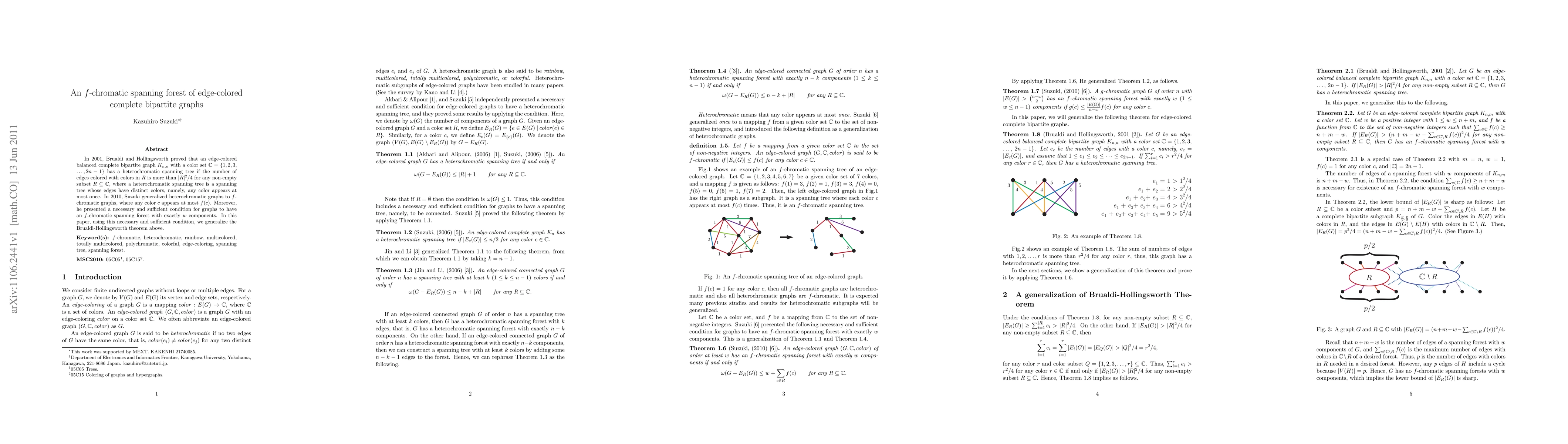 In 2001, Brualdi and Hollingsworth proved that an edge-colored balanced complete bipartite graph Kn,n with a color set C = {1,2,3,..., 2n-1} has a heterochromatic spanning tree if the number of edges colored with colors in R is more than |R|^2 /4 for any non-empty subset R \subseteq C, where a heterochromatic spanning tree is a spanning tree whose edges have distinct colors, namely, any color appears at most once. In 2010, Suzuki generalized heterochromatic graphs to f-chromatic graphs, where any color c appears at most f(c). Moreover, he presented a necessary and sufficient condition for graphs to have an f-chromatic spanning forest with exactly w components. In this paper, using this necessary and sufficient condition, we generalize the Brualdi-Hollingsworth theorem above.