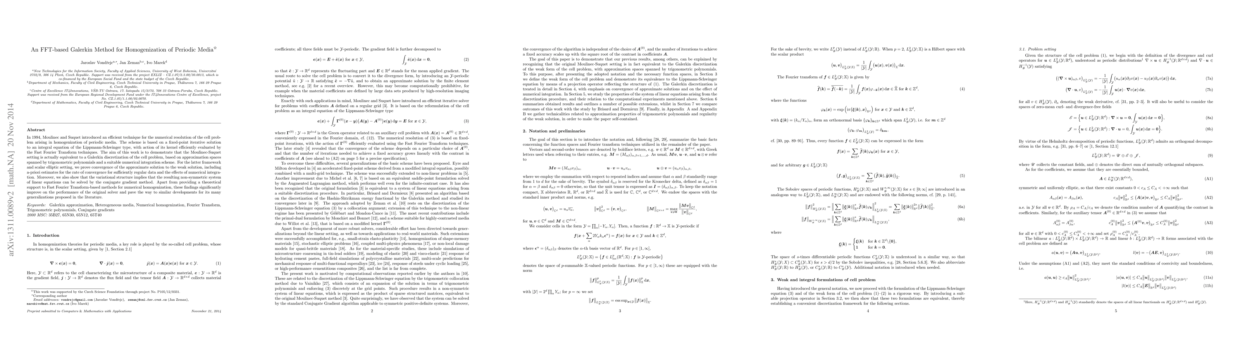 This paper demonstrates that the Moulinec-Suquet method for homogenizing periodic media is equivalent to a Galerkin method using trigonometric polynomials, proving convergence and a-priori estimates, and showing improved computational efficiency through the use of the conjugate gradient method.