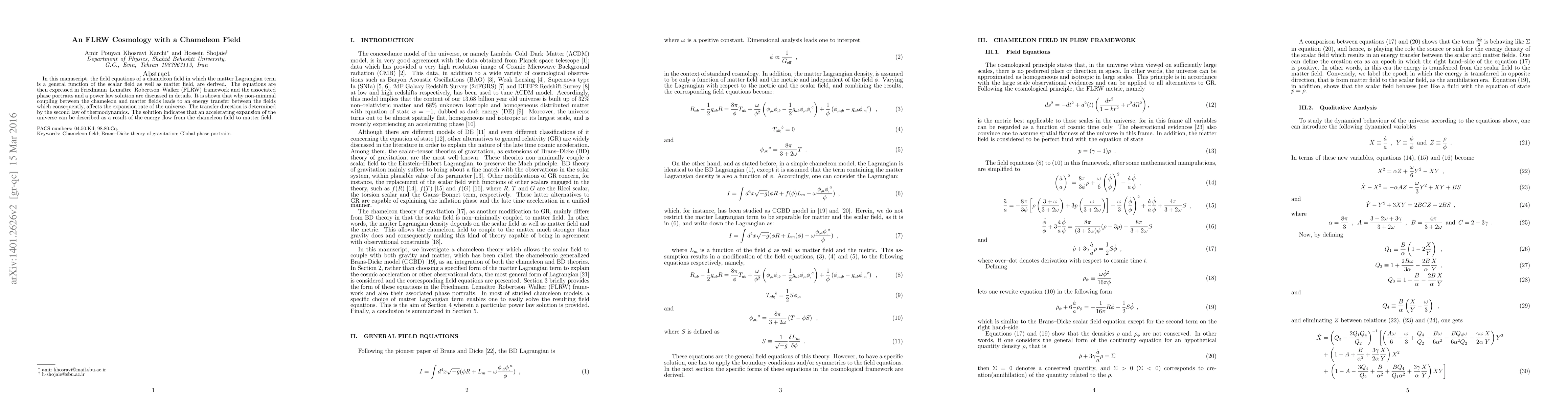 This paper derives the field equations for a chameleon field in the FLRW framework, showing how non-minimal coupling influences the universe's expansion rate. It demonstrates that energy transfer from the chameleon to the matter field, guided by the second law of thermodynamics, can result in an accelerating universe.