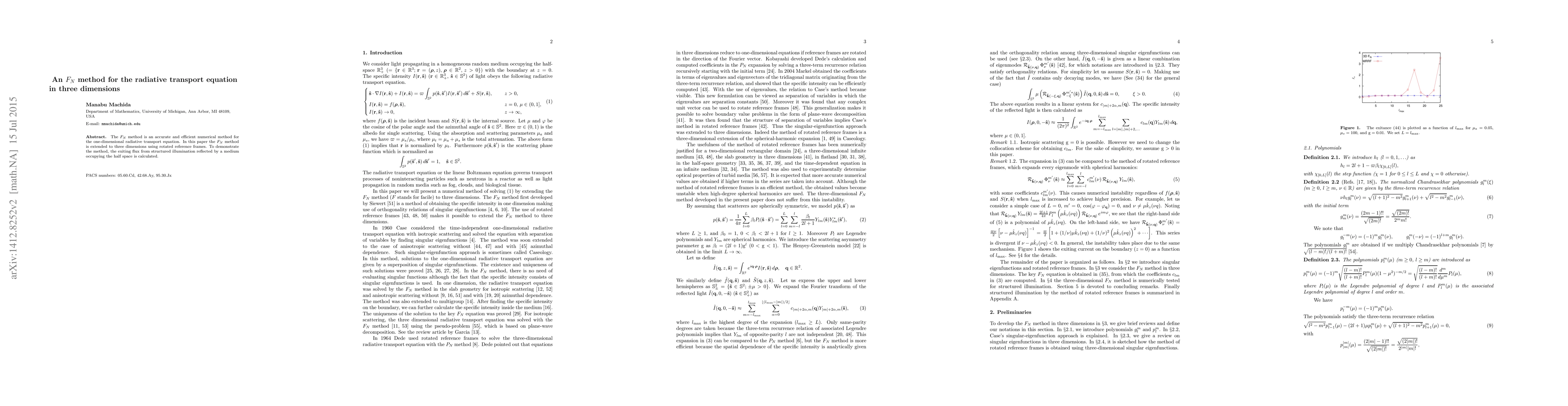 The FN method, originally designed for one-dimensional radiative transport, is extended to three dimensions using rotated reference frames. This enhanced method is applied to calculate the exiting flux from structured illumination reflected by a medium in the half space.