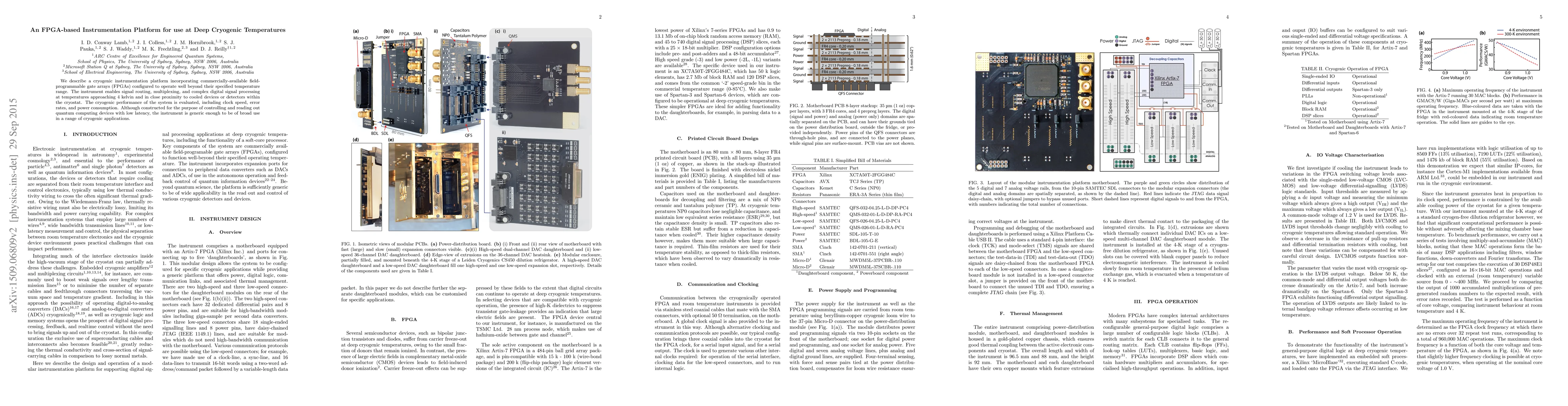 This paper presents an FPGA-based cryogenic instrumentation platform designed to operate at temperatures near 4 kelvin, enabling signal routing and digital processing. The platform's performance, including clock speed and error rates, is evaluated for use in quantum computing and other cryogenic applications.