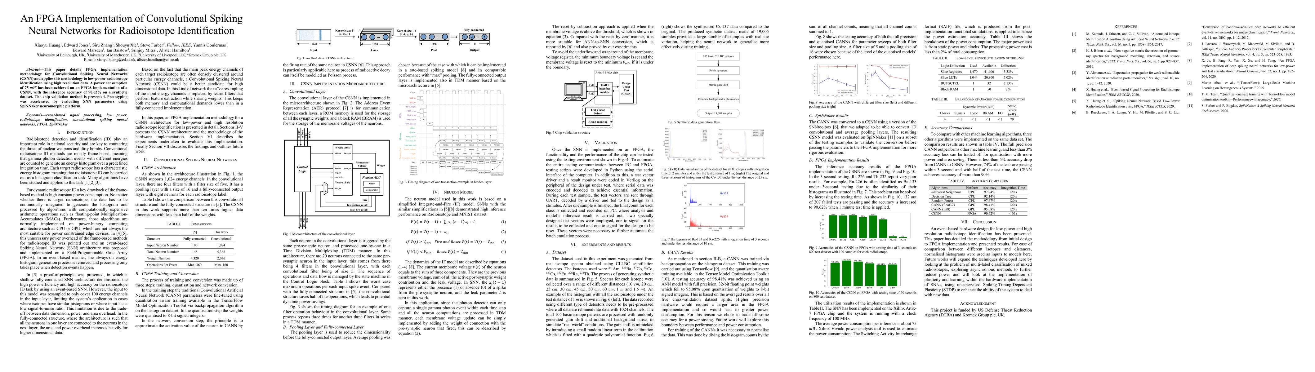 This paper presents an FPGA implementation of Convolutional Spiking Neural Networks (CSNN) for low-power radioisotope identification, achieving 75 mW power consumption and 90.62% inference accuracy. Prototyping was expedited using the SpiNNaker neuromorphic platform.