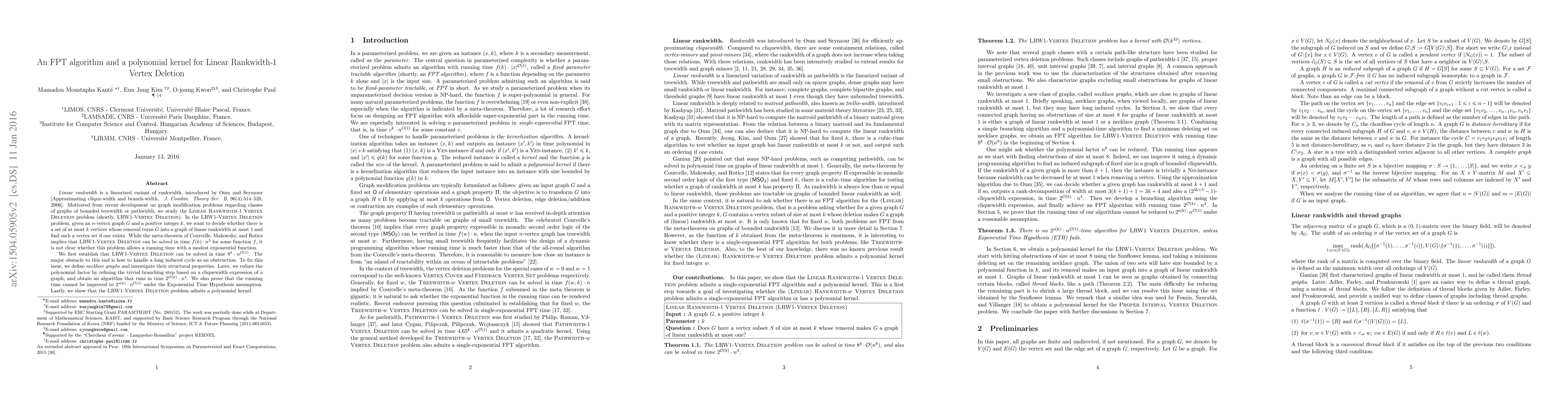 This paper presents an FPT algorithm for the Linear Rankwidth-1 Vertex Deletion problem, achieving a running time of $8^k\cdot n^{\mathcal{O}(1)}$, and further optimizes it to $2^{\mathcal{O}(k)}\cdot n^4$. It also demonstrates a polynomial kernel for the problem and proves its computational hardness under the Exponential Time Hypothesis.