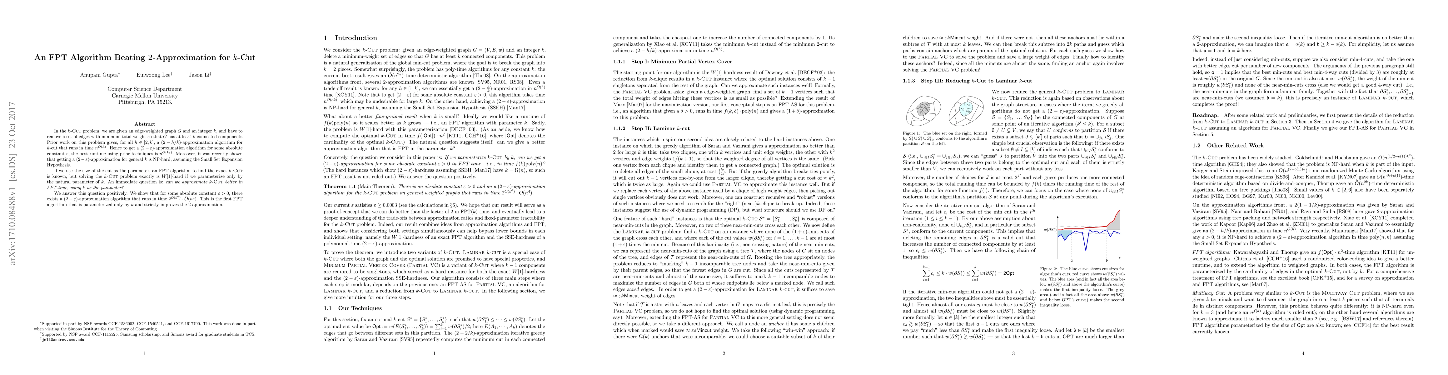 This research presents an FPT algorithm that achieves a $(2 - \varepsilon)$-approximation for the $k$-Cut problem, running in time $2^{O(k^6)} \cdot \widetilde{O} (n^4)$. This is the first FPT algorithm parameterized by $k$ that improves upon the previous $2$-approximation.