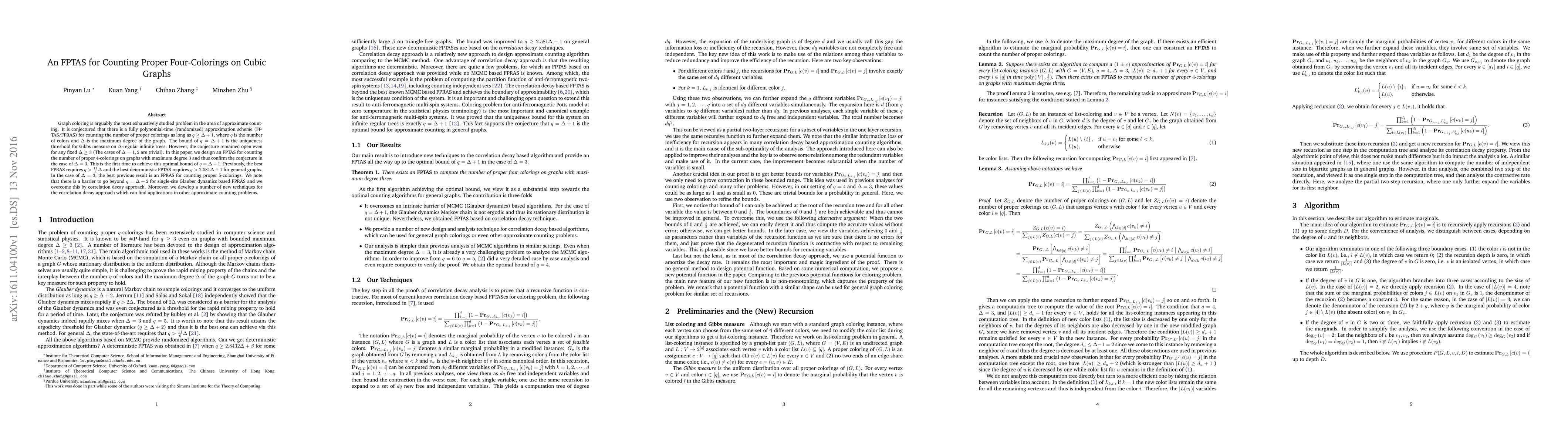 This paper presents an FPTAS for counting proper 4-colorings on cubic graphs, confirming the conjecture for $\Delta=3$ and achieving the optimal bound of $q = \Delta + 1$. It also introduces new techniques for correlation decay, overcoming barriers for single-site Glauber dynamics and potentially benefiting other approximate counting problems.