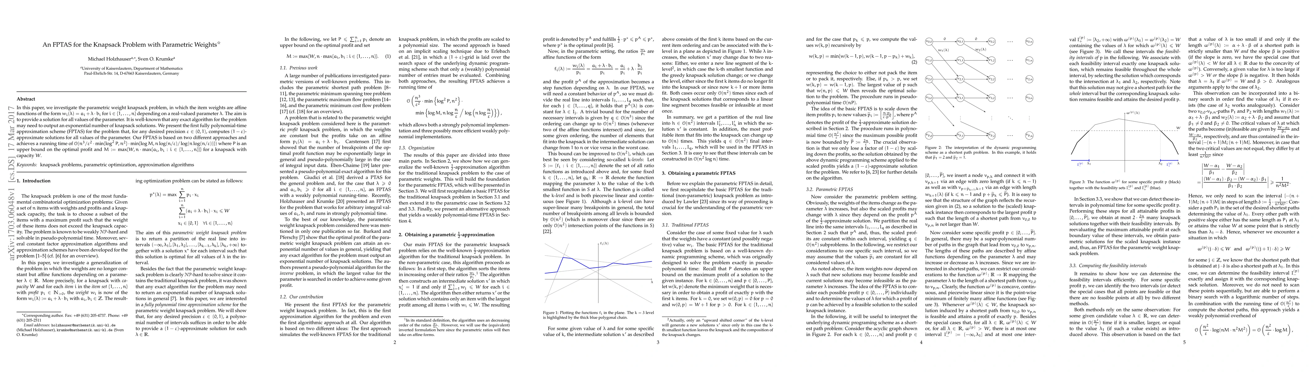 The development of an FPTAS for the parametric knapsack problem, which provides a significant improvement over existing methods.