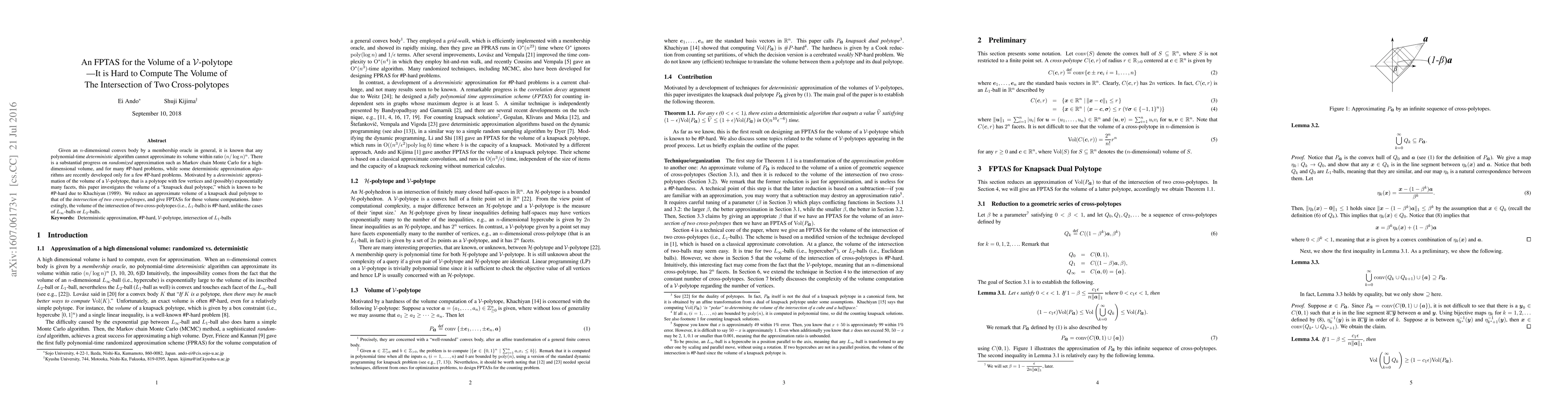 This paper develops a Fully Polynomial-Time Approximation Scheme (FPTAS) for computing the volume of the intersection of two cross-polytopes, which is a #P-hard problem. It also explores the volume of knapsack dual polytopes, reducing their approximation to the intersection volume problem.