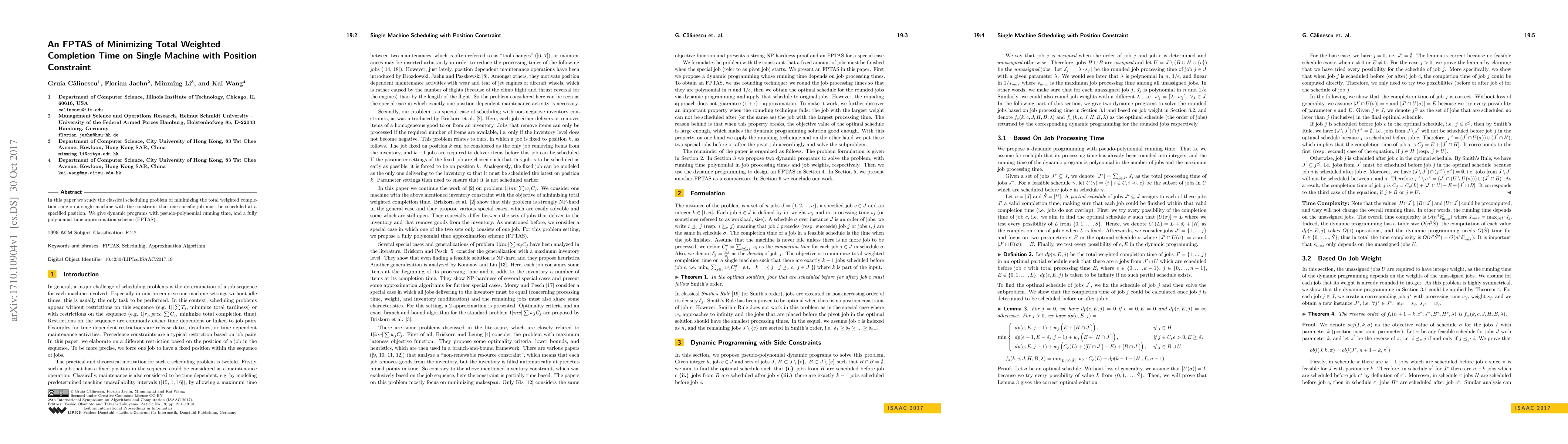 This paper presents a dynamic programming approach and a fully polynomial-time approximation scheme (FPTAS) to minimize total weighted completion time on a single machine, with a constraint that a specific job must be scheduled at a predetermined position. The proposed methods achieve pseudo-polynomial running time.