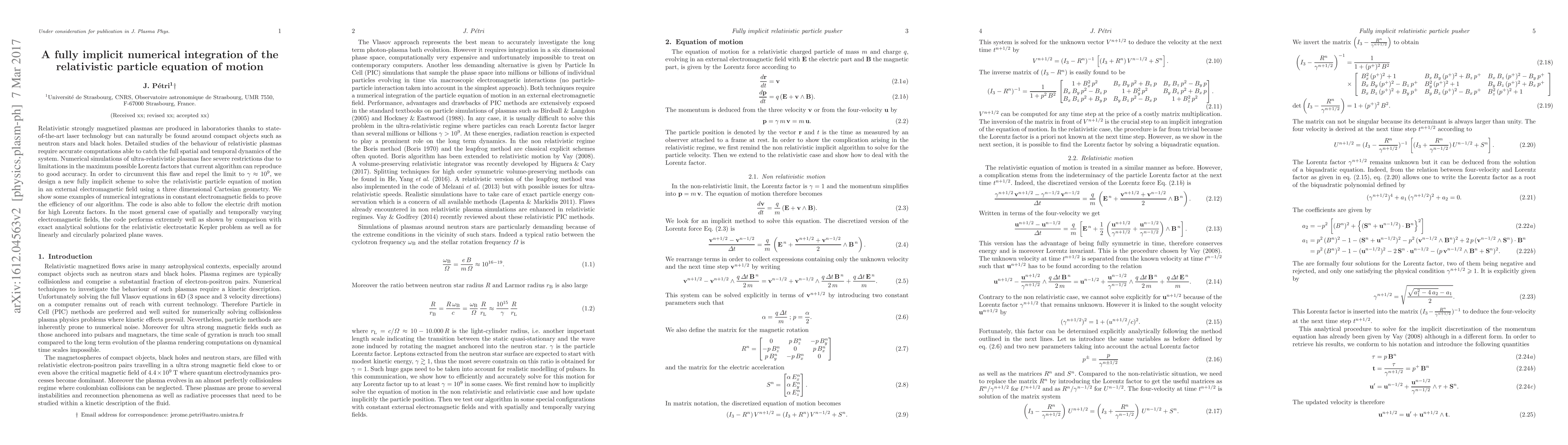 This paper introduces a fully implicit numerical scheme for solving the relativistic particle equation of motion in magnetized plasmas, enabling accurate simulations of high Lorentz factors. The proposed method outperforms existing algorithms by effectively handling extreme relativistic dynamics and varying electromagnetic fields.
