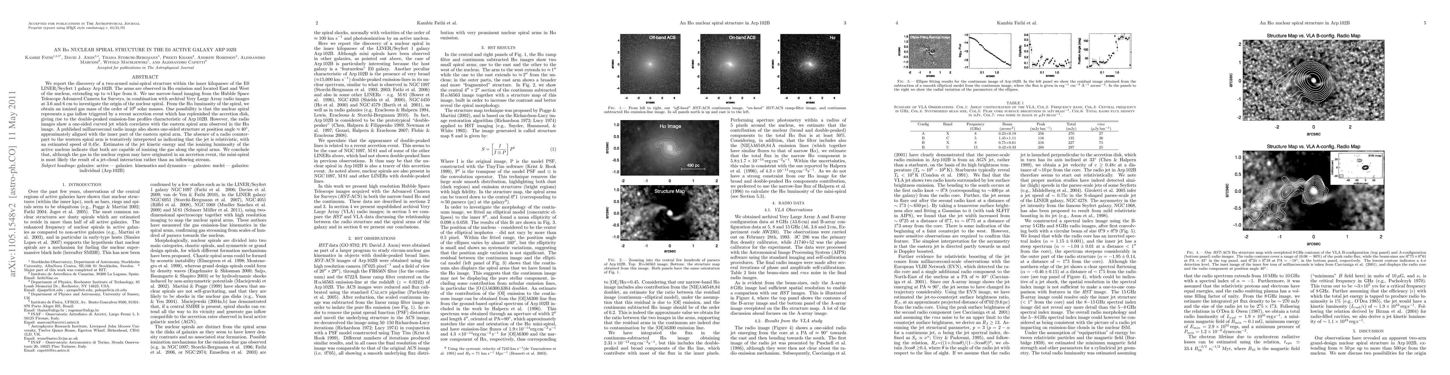 We report the discovery of a two-armed mini-spiral structure within the inner kiloparsec of the E0 LINER/Seyfert 1 galaxy Arp102B. The arms are observed in H-alpha emission and located East and West of the nucleus, extending up to about 1 kpc from it. We use narrow-band imaging from the Hubble Space Telescope Advanced Camera for Surveys, in combination with archival VLA radio images at 3.6 and 6 cm to investigate the origin of the nuclear spiral. From the H-alpha luminosity of the spiral, we obtain an ionized gas mass of the order of one million solar masses. One possibility is that the nuclear spiral represents a gas inflow triggered by a recent accretion event which has replenished the accretion disk, giving rise to the double-peaked emission-line profiles characteristic of Arp102B. However, the radio images show a one-sided curved jet which correlates with the eastern spiral arm observed in the H-alpha image. A published milliarcsecond radio image also shows one-sided structure at position angle about 40 degrees, approximately aligned with the inner part of the eastern spiral arm. The absence of a radio counter-part to the western spiral arm is tentatively interpreted as indicating that the jet is relativistic, with an estimated speed of 0.45c. Estimates of the jet kinetic energy and the ionizing luminosity of the active nucleus indicate that both are capable of ionizing the gas along the spiral arms. We conclude that, although the gas in the nuclear region may have originated in an accretion event, the mini-spiral is most likely the result of a jet-cloud interaction rather than an inflowing stream.