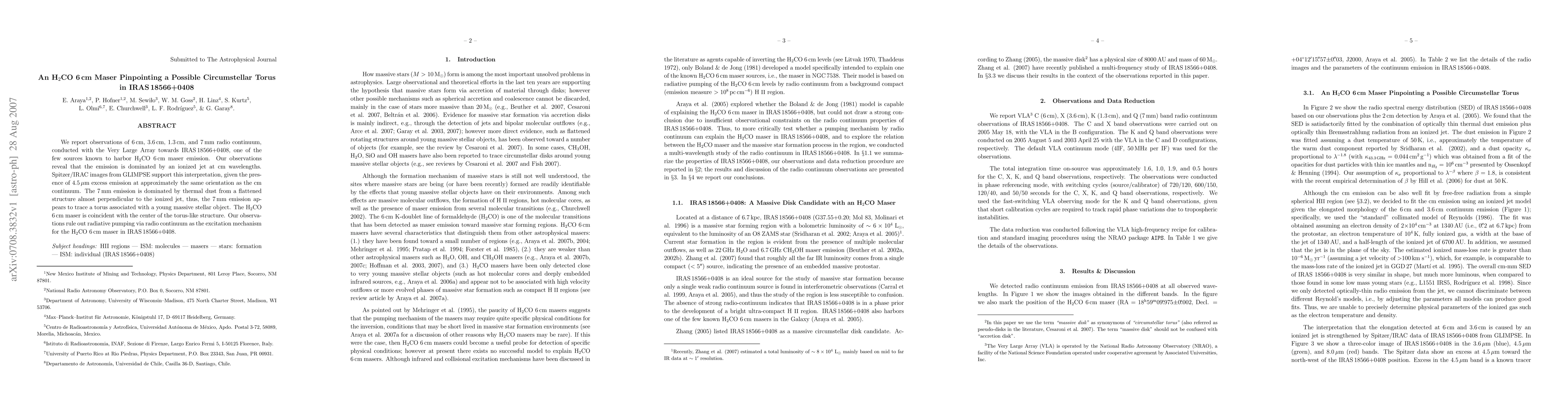 We report observations of 6cm, 3.6cm, 1.3cm, and 7mm radio continuum, conducted with the Very Large Array towards IRAS18566+0408, one of the few sources known to harbor H2CO 6cm maser emission. Our observations reveal that the emission is dominated by an ionized jet at cm wavelengths. Spitzer/IRAC images from GLIMPSE support this interpretation, given the presence of 4.5um excess emission at approximately the same orientation as the cm continuum. The 7mm emission is dominated by thermal dust from a flattened structure almost perpendicular to the ionized jet, thus, the 7mm emission appears to trace a torus associated with a young massive stellar object. The H2CO 6cm maser is coincident with the center of the torus-like structure. Our observations rule out radiative pumping via radio continuum as the excitation mechanism for the H2CO 6cm maser in IRAS18566+0408.