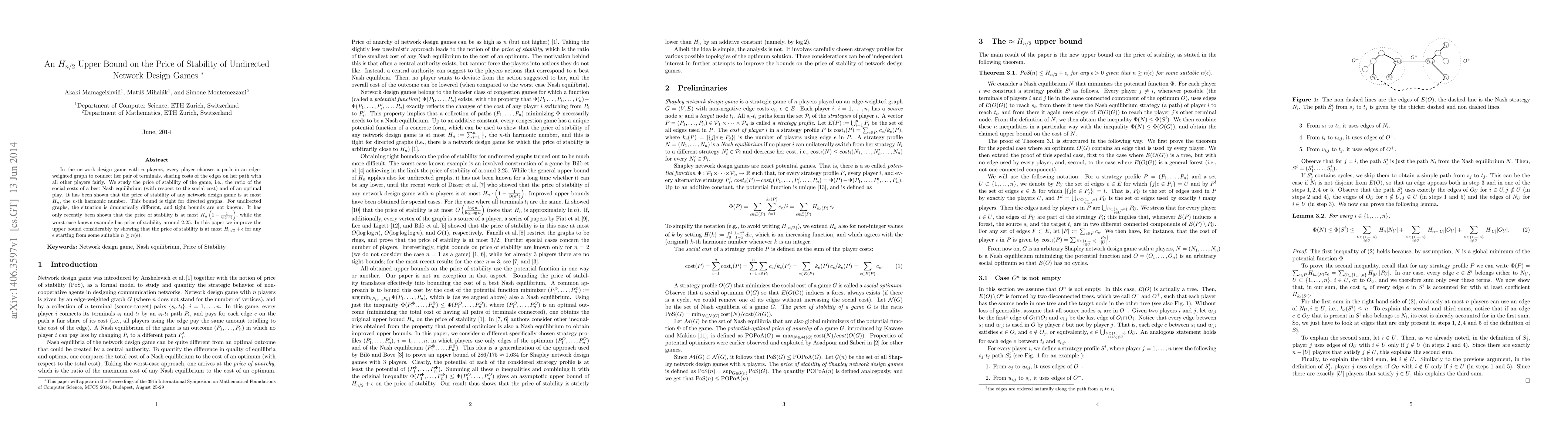 This paper improves the upper bound on the price of stability for undirected network design games, showing it is at most $H_{n/2} + \epsilon$ for sufficiently large $n$, surpassing the previously known bound of $H_n \left(1-\frac{1}{\Theta(n^4)} \right)$.