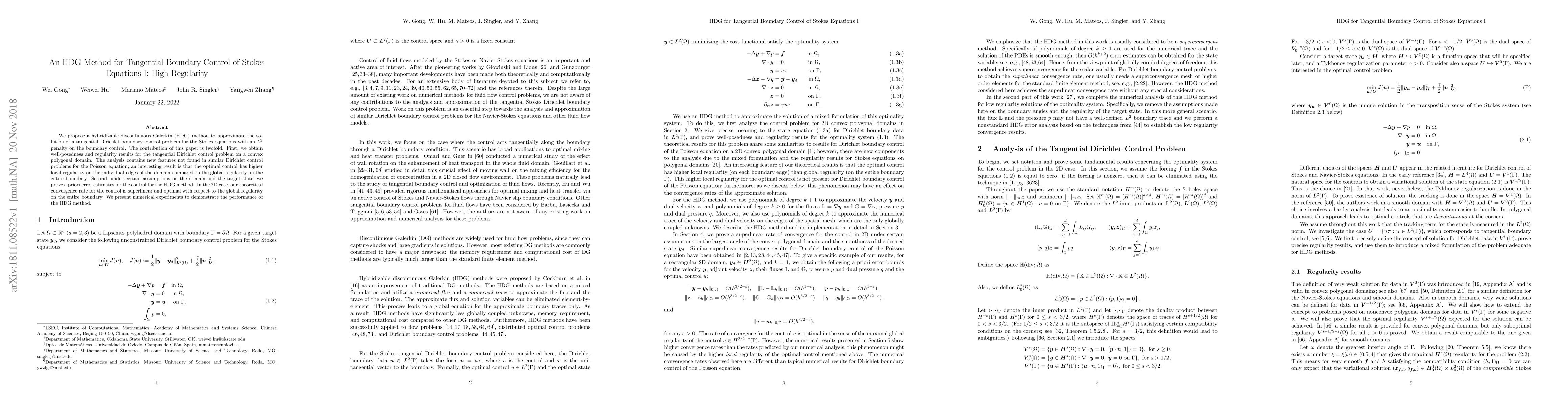 This paper proposes a hybridizable discontinuous Galerkin (HDG) method for solving a tangential Dirichlet boundary control problem for the Stokes equations, proving high regularity results and establishing a priori error estimates with superlinear convergence in 2D. The analysis reveals higher local regularity on individual edges compared to global boundary regularity.