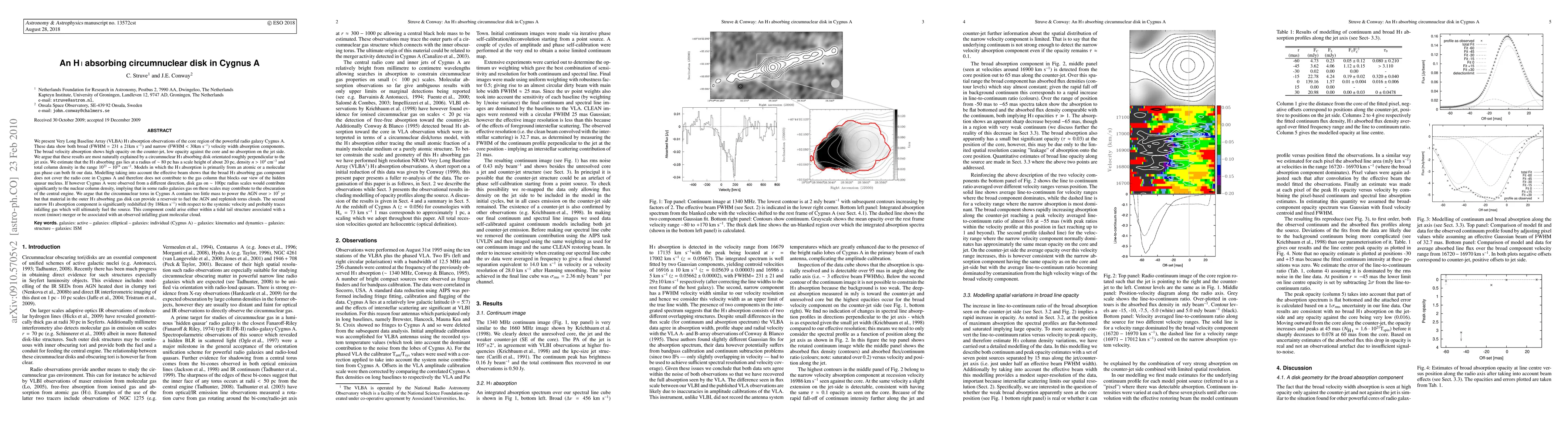 We present Very Long Baseline Array (VLBA) HI absorption observations of the core region of the powerful radio galaxy Cygnus A. These data show both broad (FWHM = 231 \pm 21 km/s) and narrow (FWHM <30 km/s) velocity width absorption components. The broad velocity absorption shows high opacity on the counter jet, low opacity against the core and no absorption on the jet side. We argue that these results are most naturally explained by a circumnuclear HI absorbing disk orientated roughly perpendicular to the jet axis. We estimate that the HI absorbing gas lies at a radius of ~80 pc has a scale height of about 20 pc, density n > 10^{4} cm^{-3} and total column density in the range 10^{23}-10^{24} cm^{-2}. Models in which the HI absorption is primarily from an atomic or a molecular gas phase can both fit our data. Modelling taking into account the effective beam shows that the broad HI absorbing gas component does not cover the radio core in Cygnus A and therefore does not contribute to the gas column that blocks our view of the hidden quasar nucleus. If however Cygnus A were observed from a different direction, disk gas on ~100 pc radius scales would contribute significantly to the nuclear column density, implying that in some radio galaxies gas on these scales may contribute to the obscuration of the central engine. We argue that the circumnuclear torus in Cygnus A contains too little mass to power the AGN over > 10^{7} yr but that material in the outer HI absorbing gas disk can provide a reservoir to fuel the AGN and replenish torus clouds. The second narrow HI absorption component is significantly redshifted (by 186km/s) with respect to the systemic velocity and probably traces infalling gas which will ultimately fuel the source. [abridged]