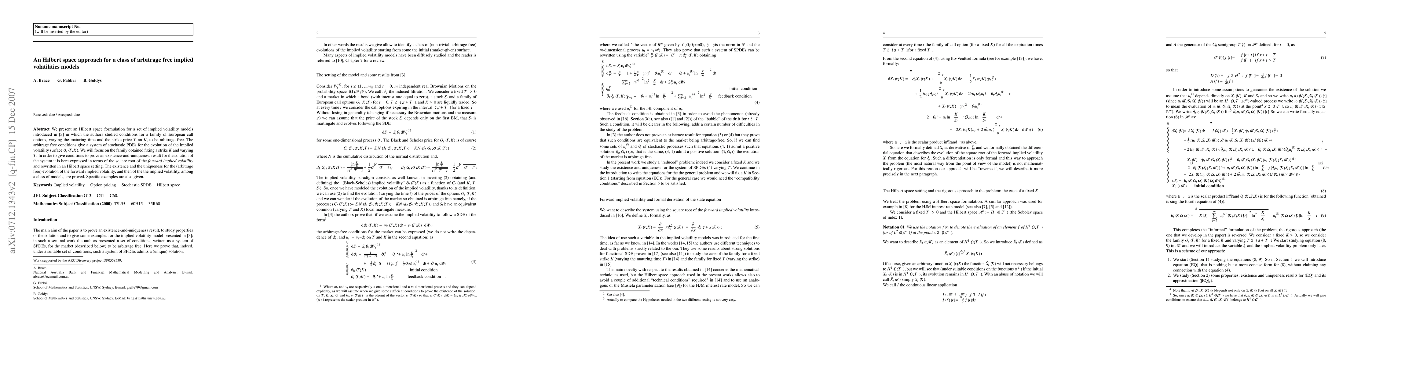 This paper formulates a set of arbitrage-free implied volatility models using Hilbert space techniques, transforming the system of stochastic PDEs into this setting to prove the existence and uniqueness of solutions. Specific examples illustrate the practical application of these models.