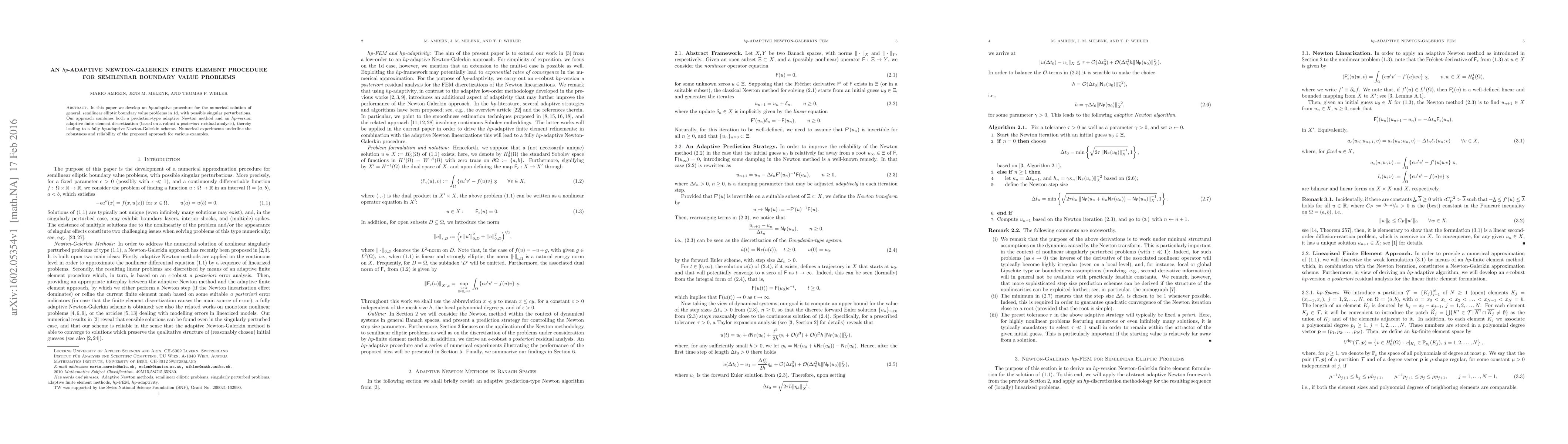 In this paper we develop an $hp$-adaptive procedure for the numerical solution of general, semilinear elliptic boundary value problems in 1d, with possible singular perturbations. Our approach combines both a prediction-type adaptive Newton method and an $hp$-version adaptive finite element discretization (based on a robust a posteriori residual analysis), thereby leading to a fully $hp$-adaptive Newton-Galerkin scheme. Numerical experiments underline the robustness and reliability of the proposed approach for various examples.