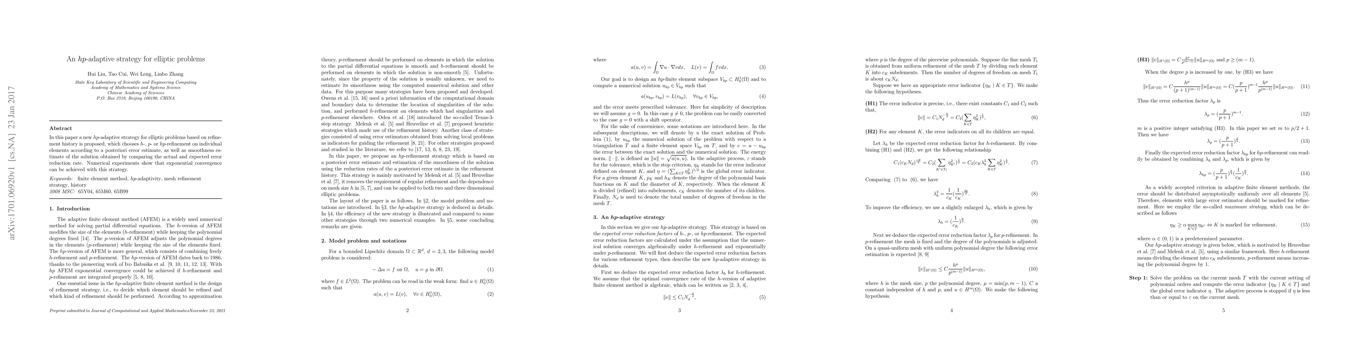This paper introduces a new hp-adaptive strategy for solving elliptic problems, employing h-, p-, or hp-refinement based on a posteriori error and smoothness estimates. Numerical experiments demonstrate exponential convergence using this adaptive method.