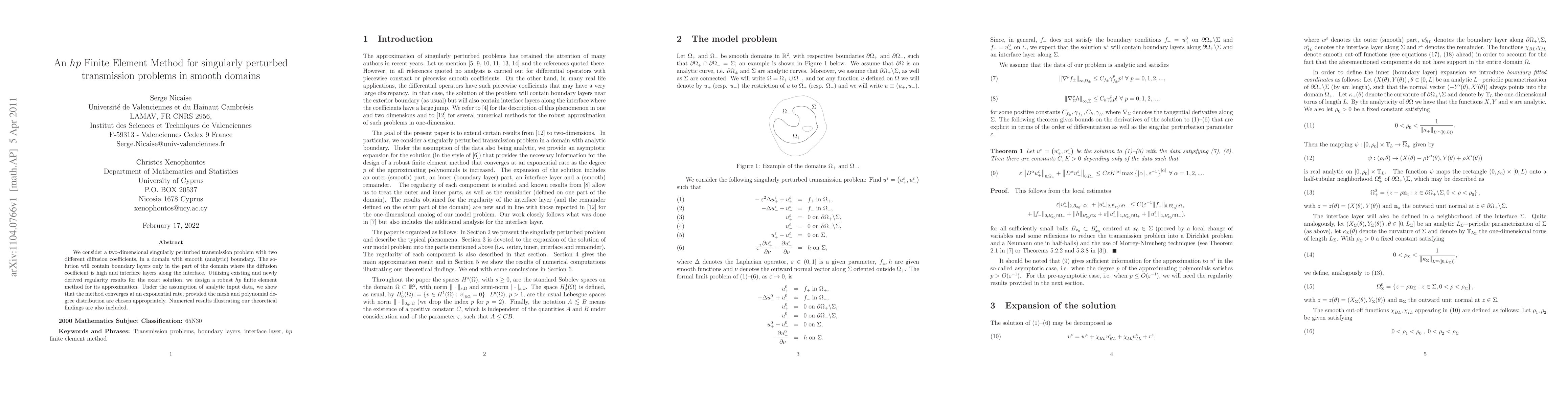 We consider a two-dimensional singularly perturbed transmission problem with two different diffusion coefficients, in a domain with smooth (analytic) boundary. The solution will contain boundary layers only in the part of the domain where the diffusion coefficient is high and interface layers along the interface. Utilizing existing and newly derived regularity results for the exact solution, we design a robust $hp$ finite element method for its approximation. Under the assumption of analytic input data, we show that the method converges at an e{xponential} rate, provided the mesh and polynomial degree distribution are chosen appropriately. Numerical results illustrating our theoretical findings are also included.