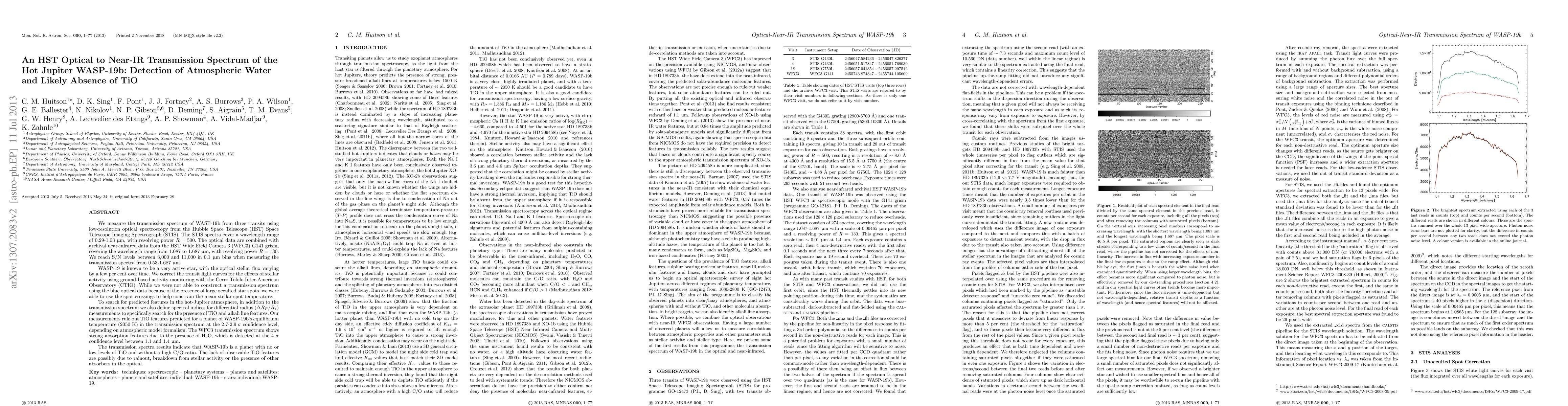 This study presents a combined HST optical to near-IR transmission spectrum of the hot Jupiter WASP-19b, detecting water vapor at 4 sigma confidence but ruling out TiO features, suggesting low or no TiO presence in the atmosphere.